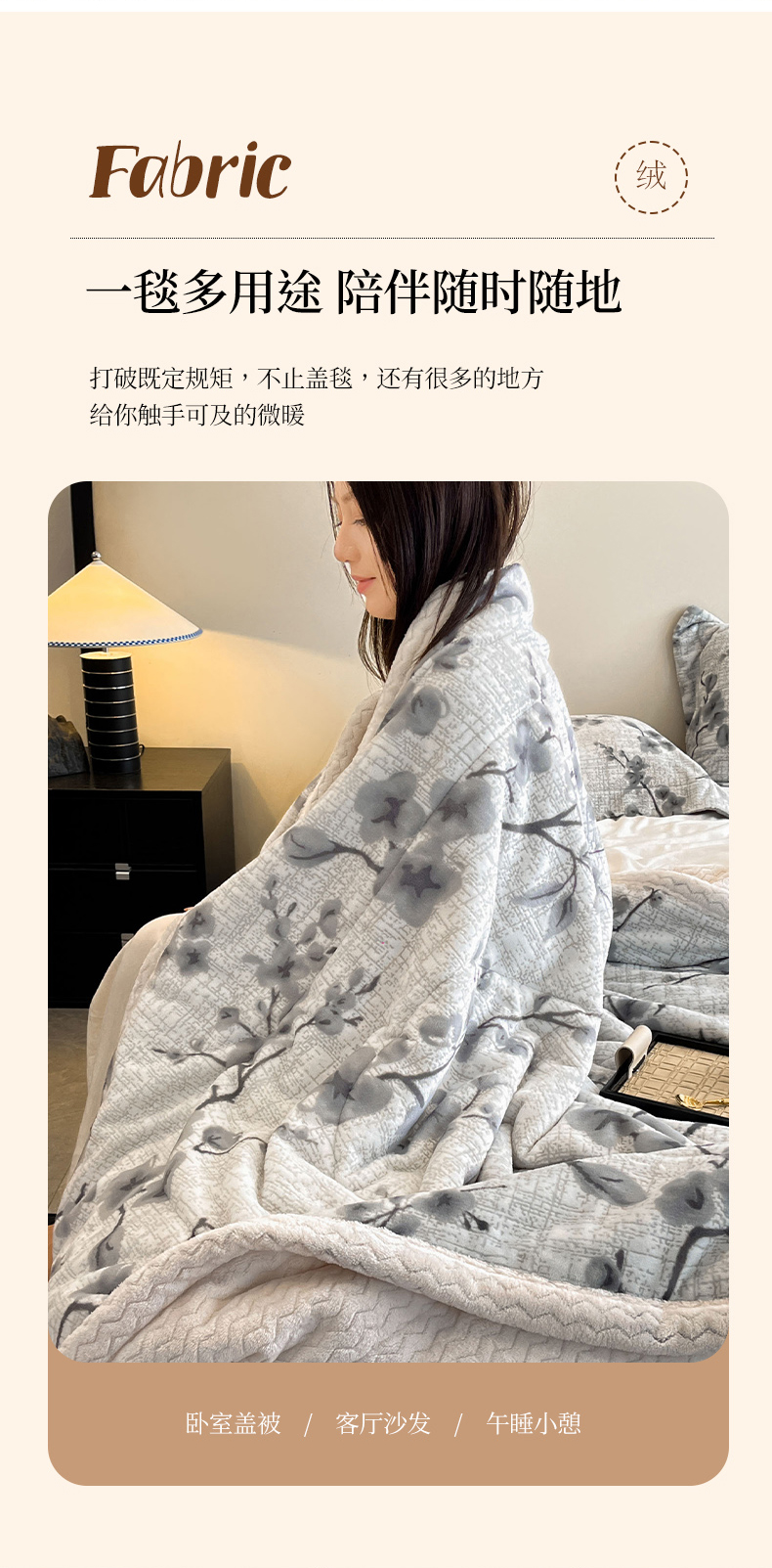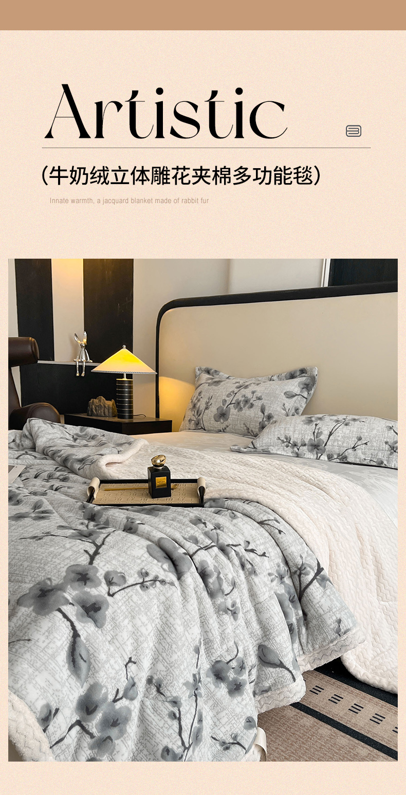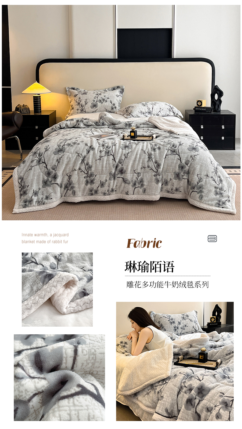 宜代光年 2025新款牛奶绒立体雕花夹棉多功能毯 琳瑜陌语