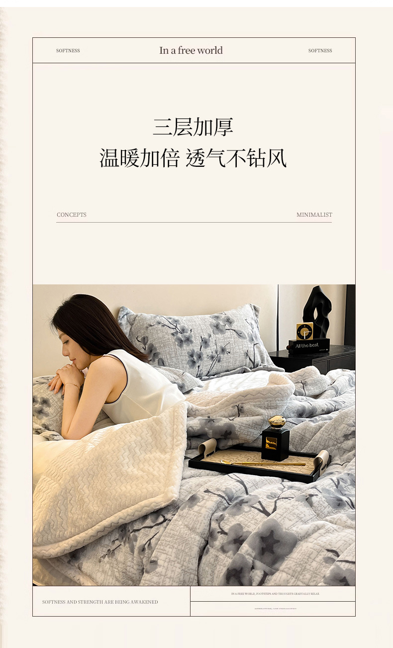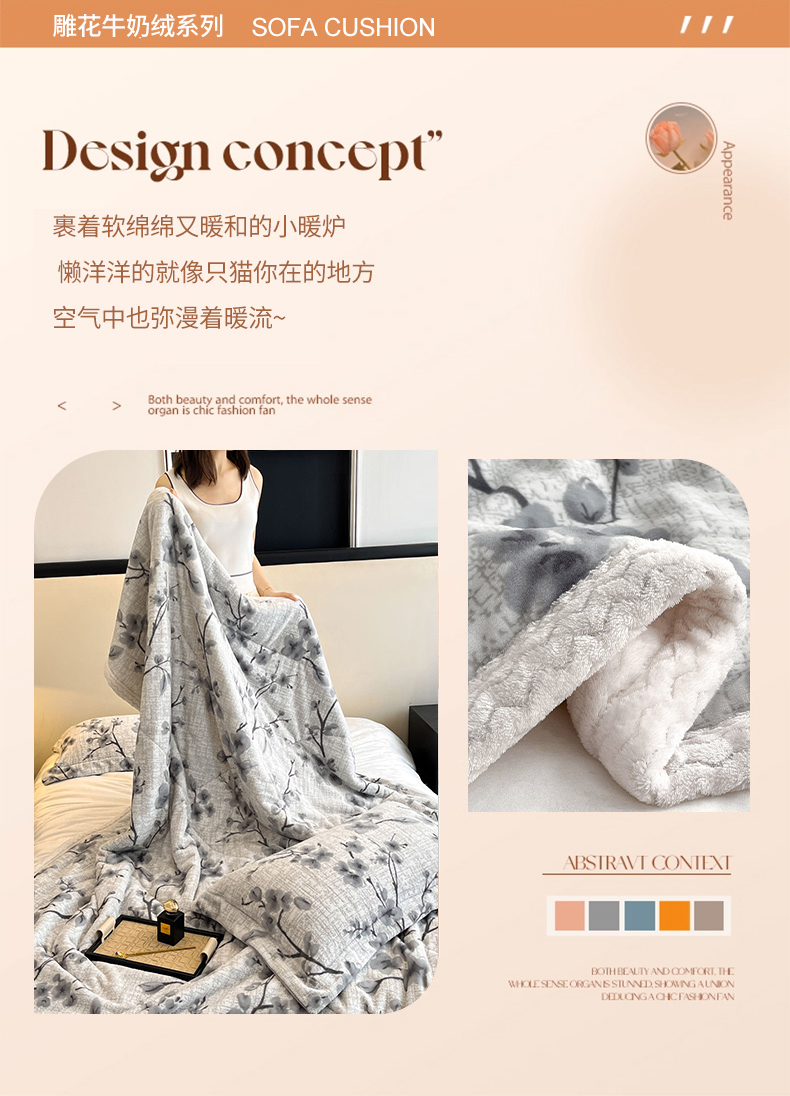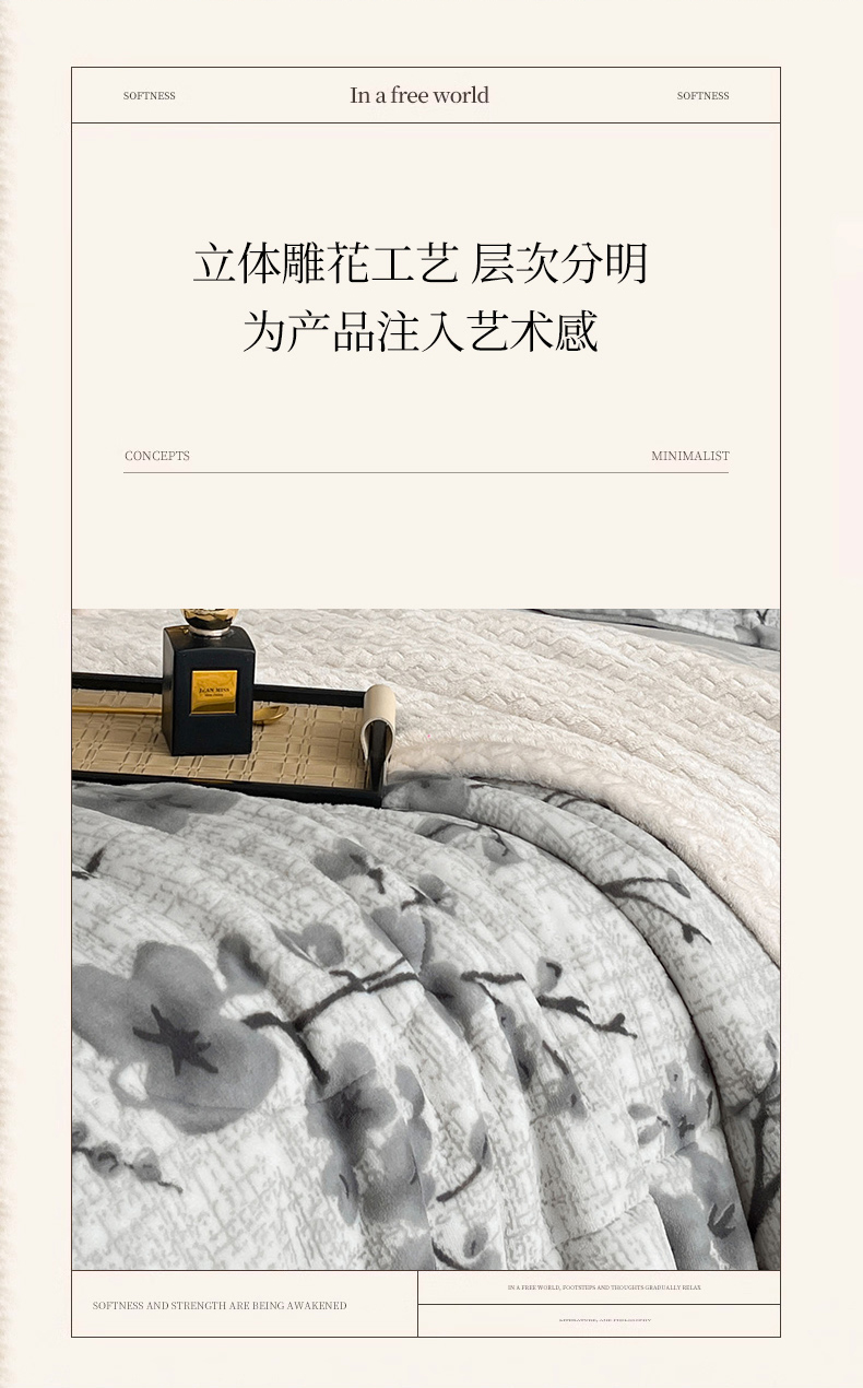 宜代光年 2025新款牛奶绒立体雕花夹棉多功能毯 琳瑜陌语