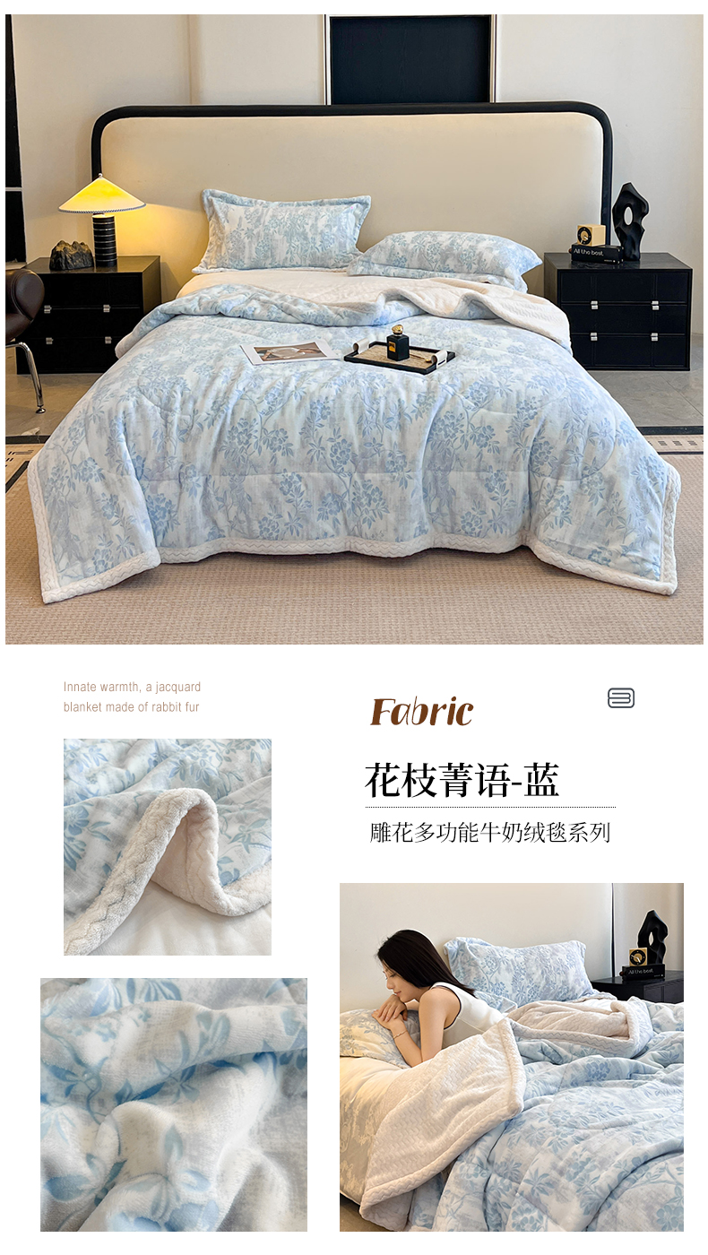 商品名称:宜代光年 2025新款牛奶绒立体雕花夹棉多功能毯 琳瑜陌语