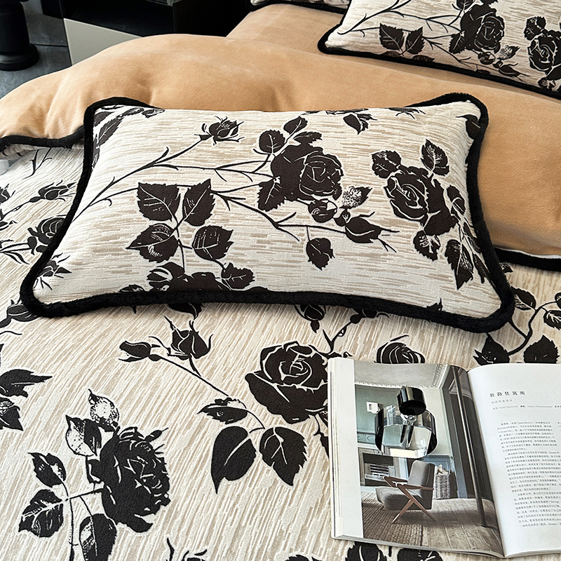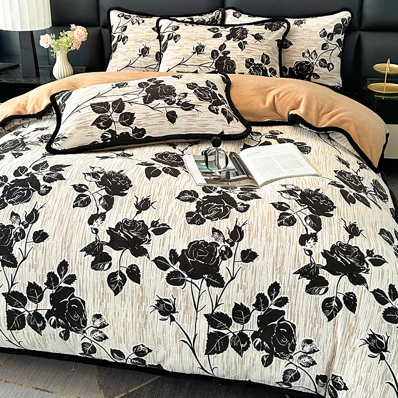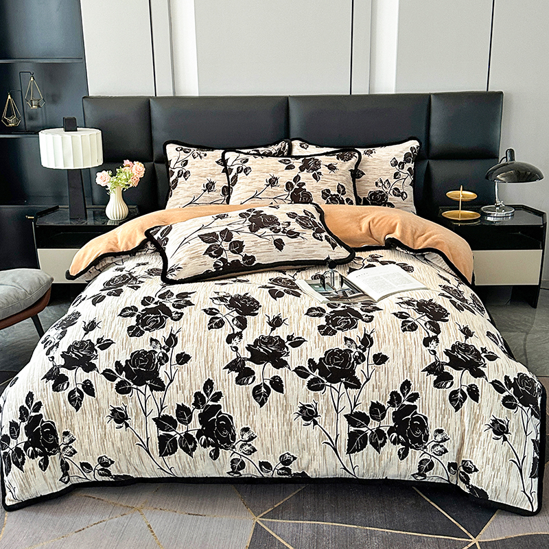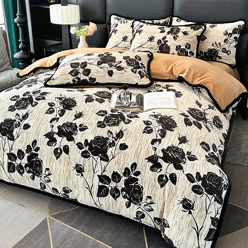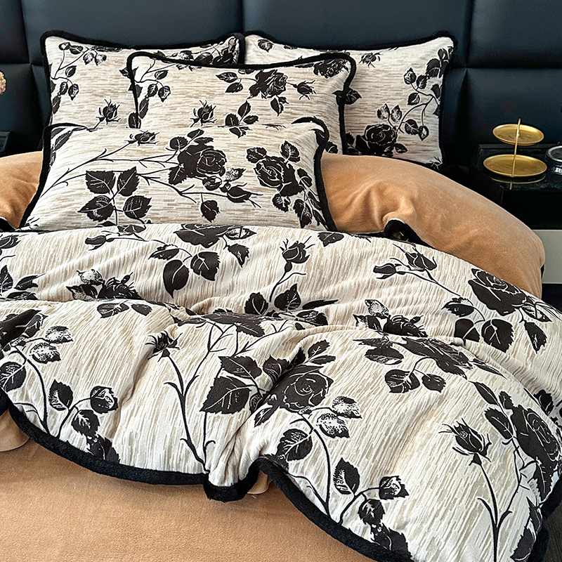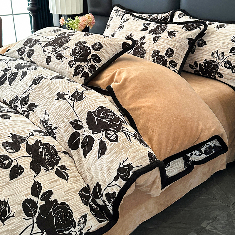 商品名称:柏薇 2025新款兔毛宽包边立体雕花牛奶绒四件套 梦花坞