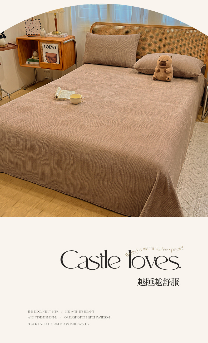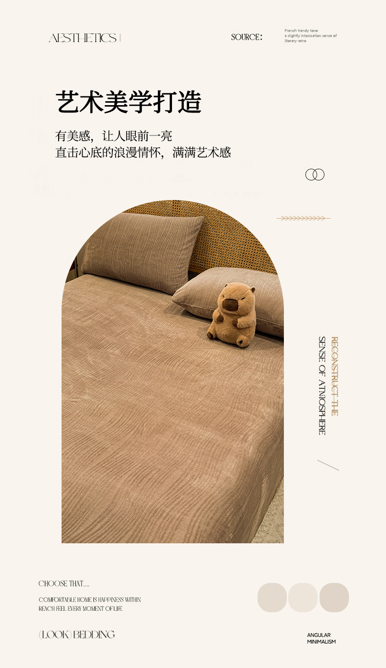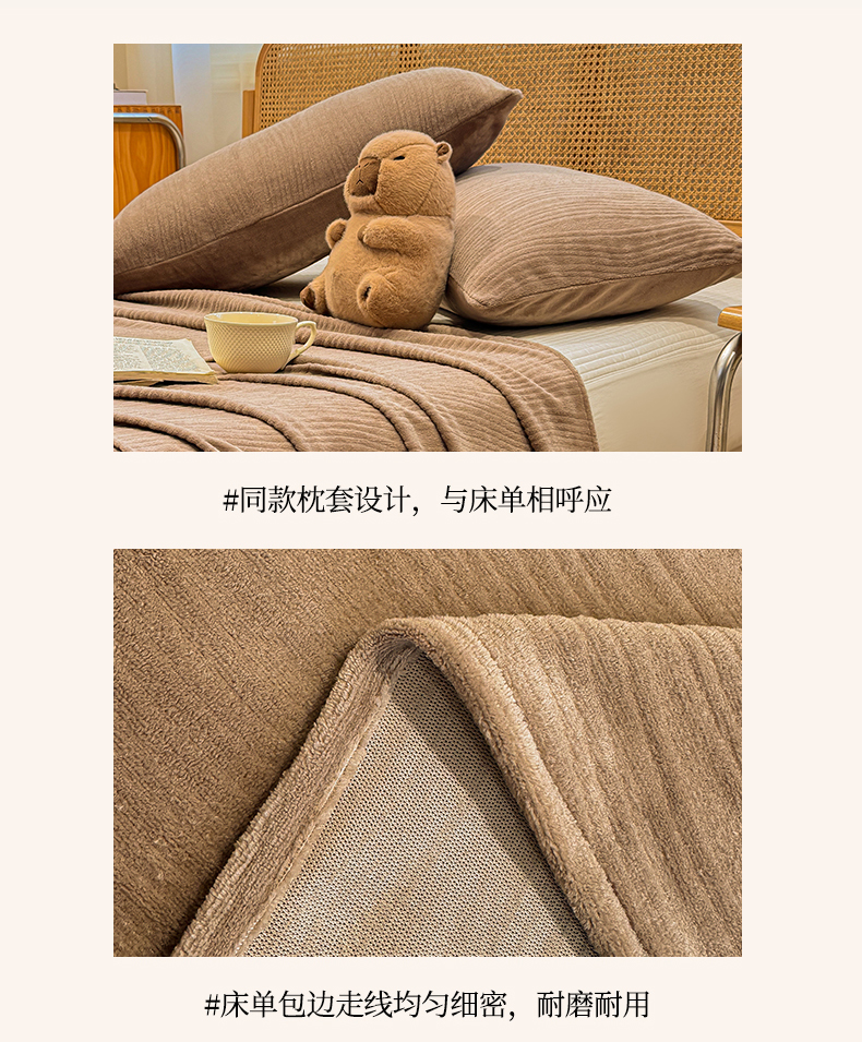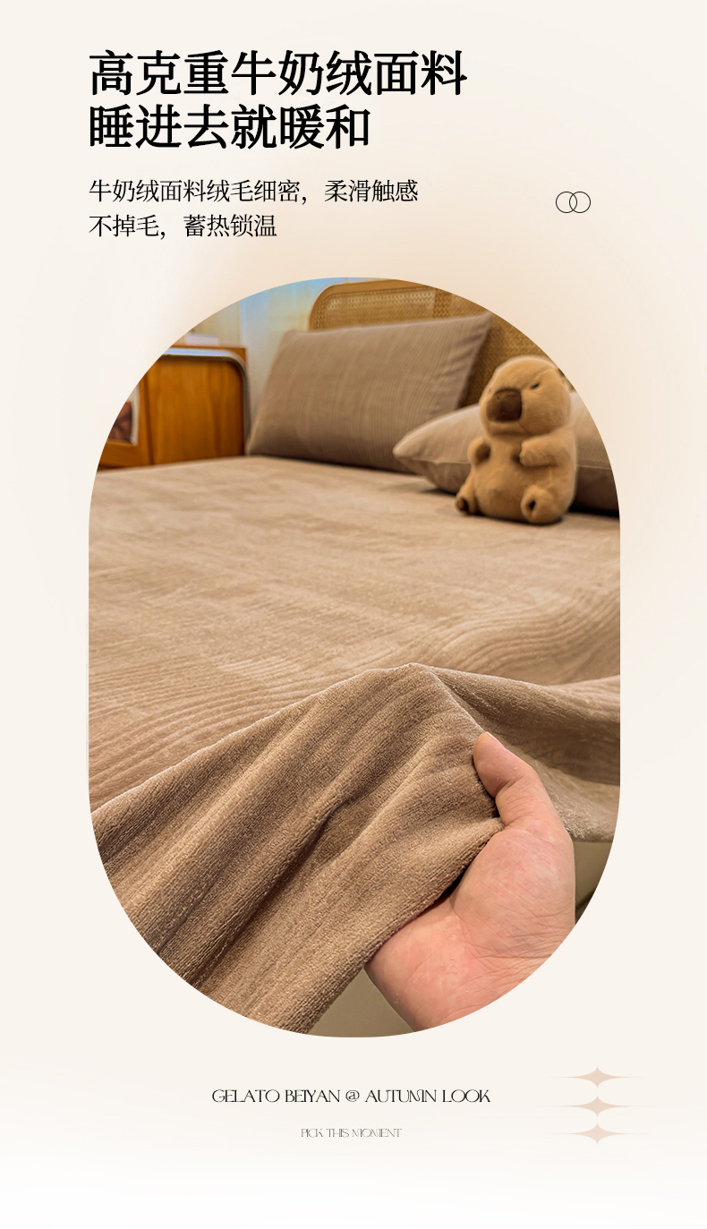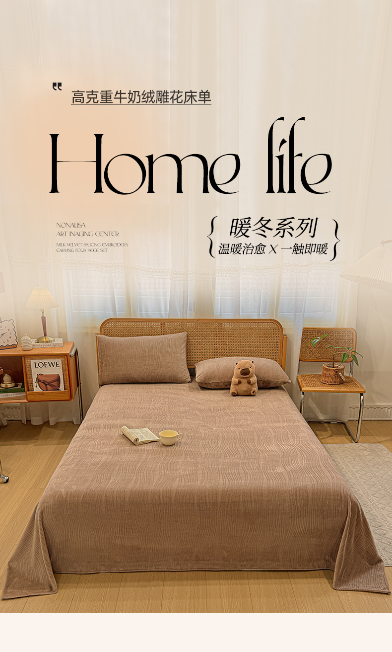 • 91家纺网 家纺一手货源 找家纺 灰鲸 2025新款纯色雕花牛奶绒床单单品床单床单单件 温妮-摩卡