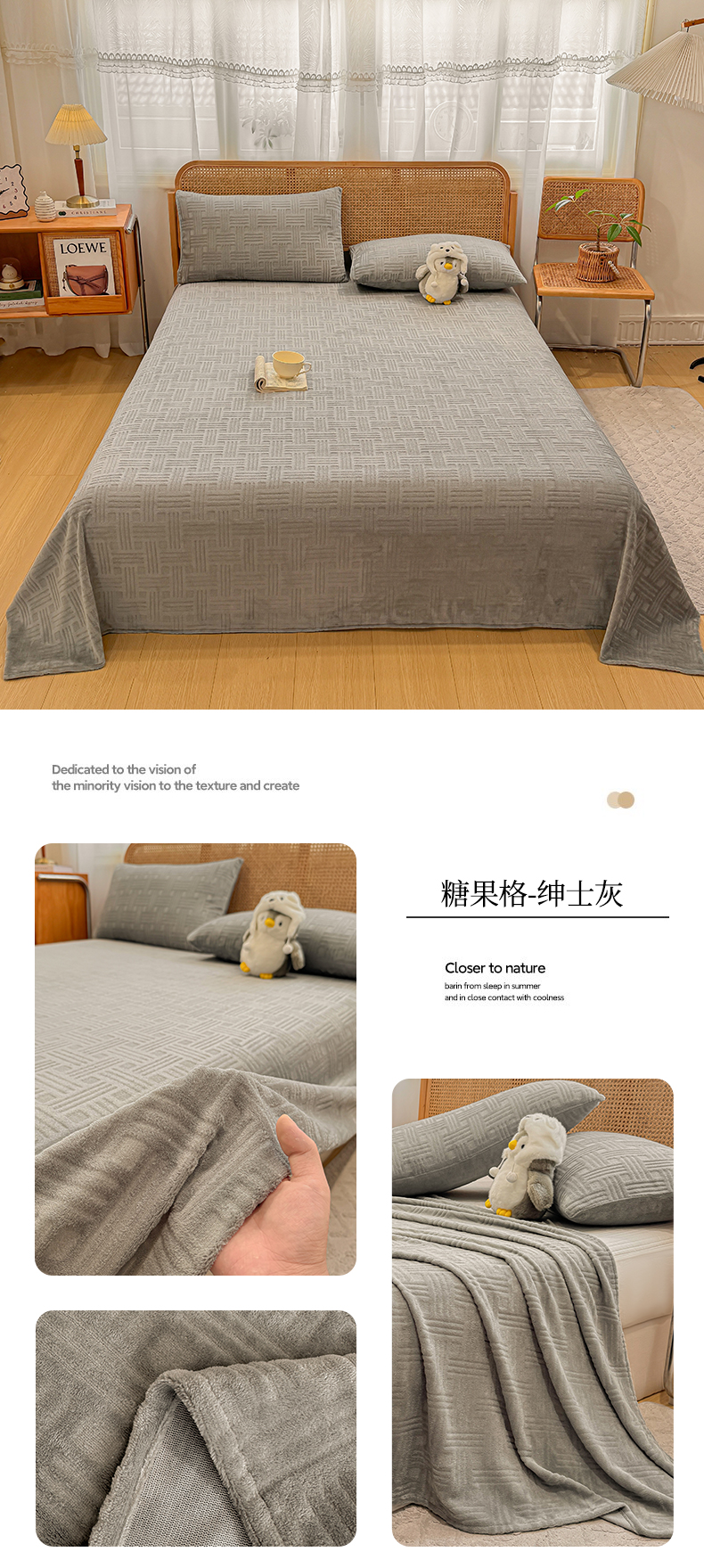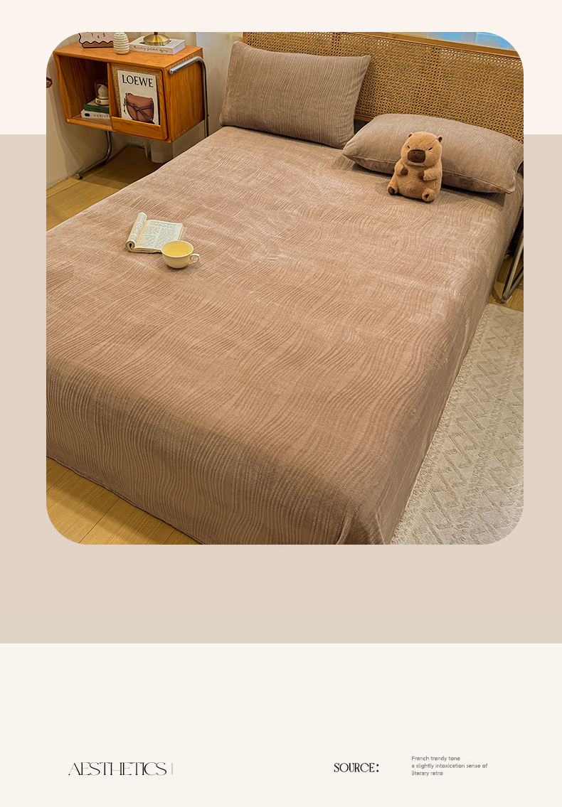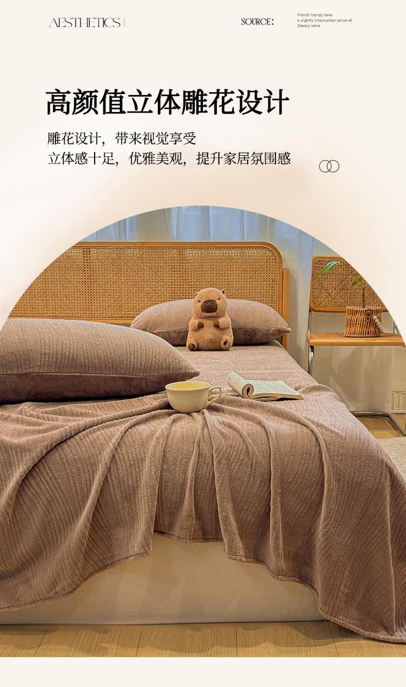 灰鲸 2025新款纯色雕花牛奶绒床单单品床单床单单件 温妮-摩卡