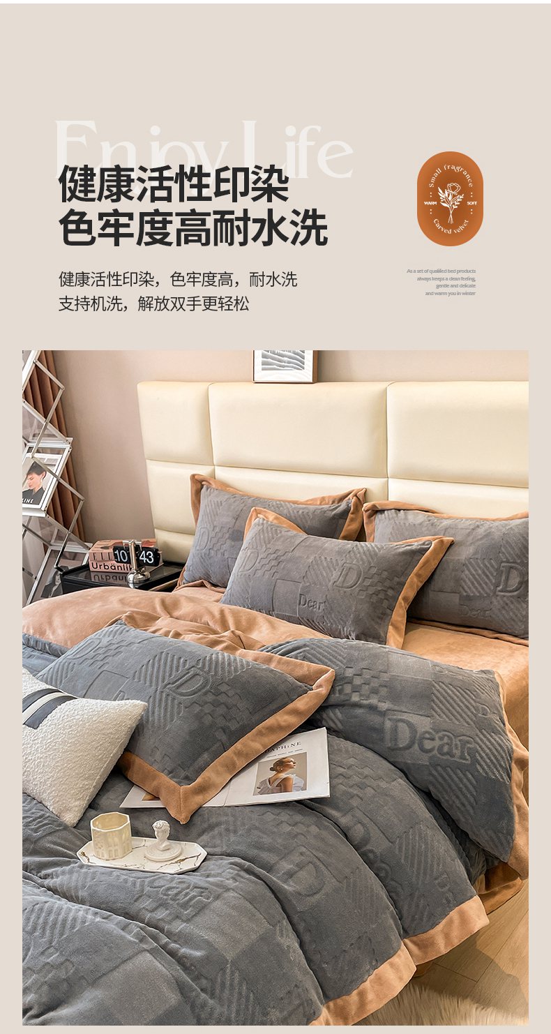当前位置: 91家纺网 > 商品网购 > 床品套件 > 四件套 > 牛奶绒四件套 > 艾佳 2025新款5D雕花牛奶绒拼角宽边工艺四件套-唯爱系列 唯爱-灰咖