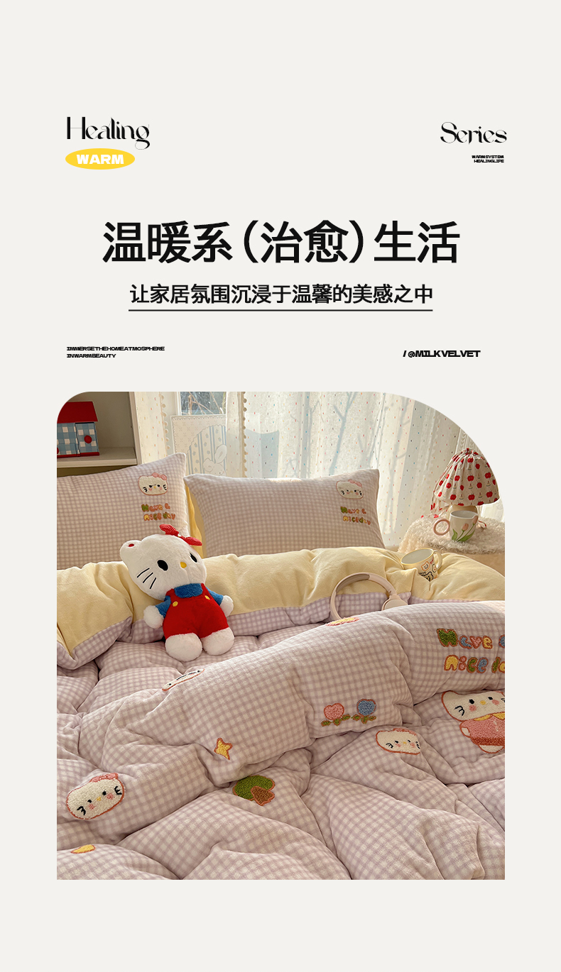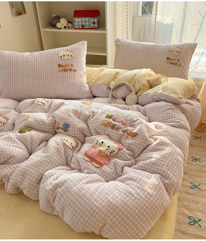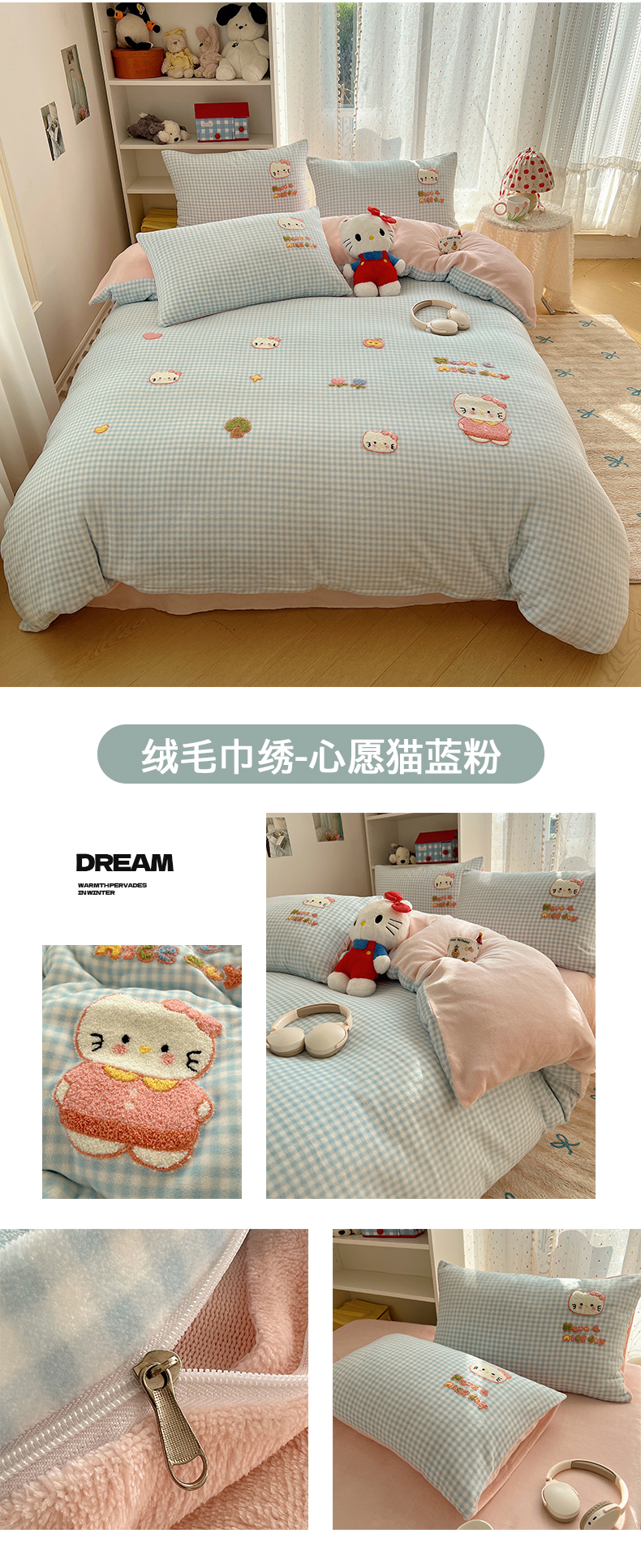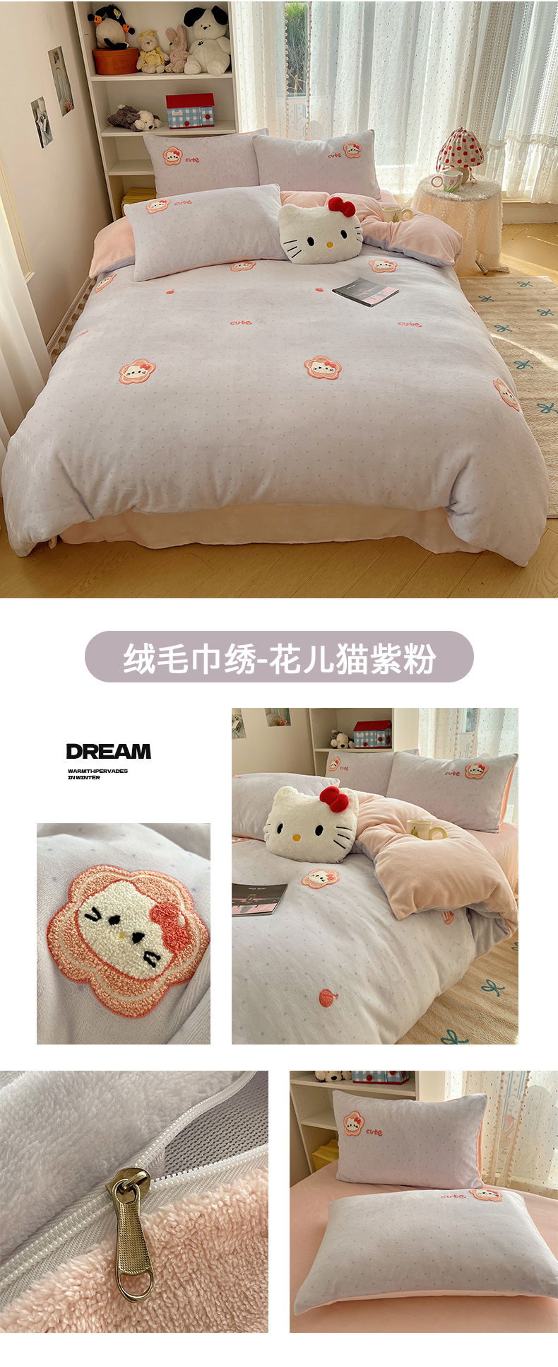 当前位置: 91家纺网 > 商品网购 > 床品套件 > 四件套 > 牛奶绒四件套 > 桃子家居 2025新款A类ins毛巾绣少女猫咪可爱格子混搭加厚牛奶绒系列四件套 绒毛巾绣-心愿猫紫黄