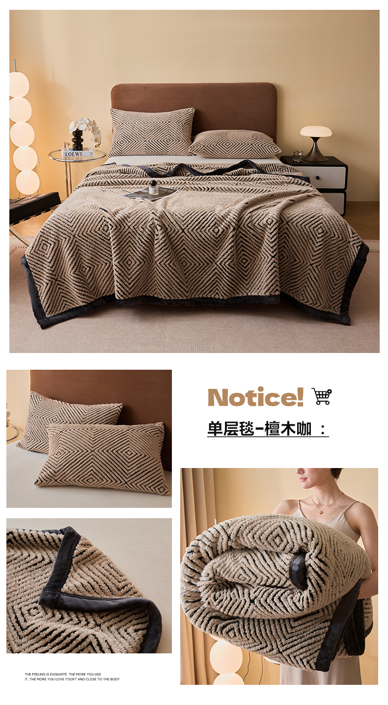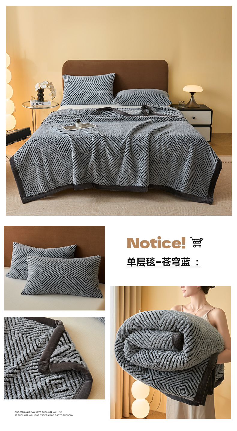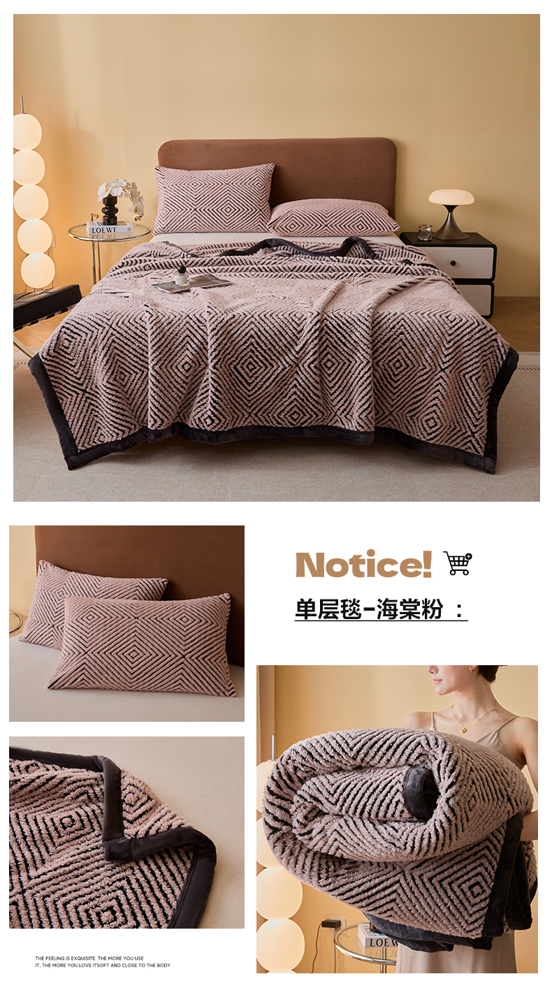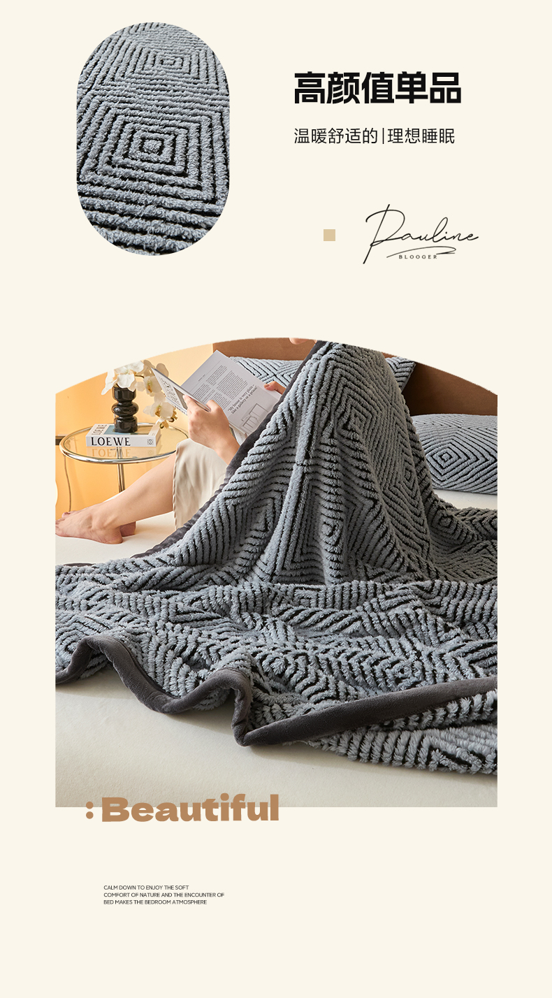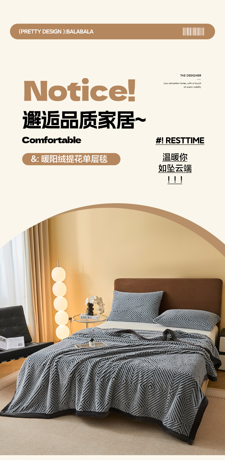 商品名称:(总)欧邦 2025新款轻奢暖阳绒提花双面绒单层毯毯子