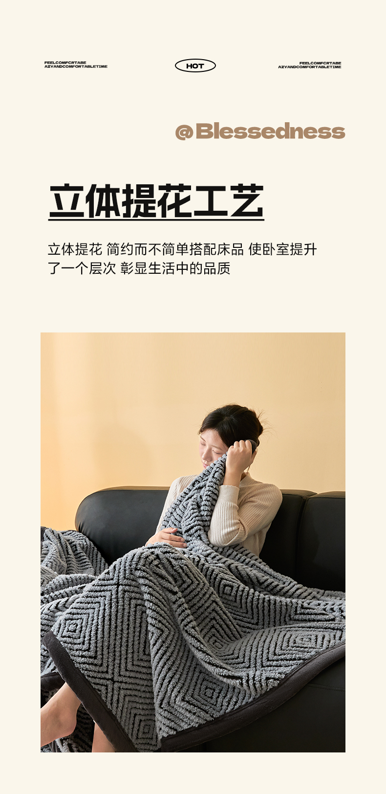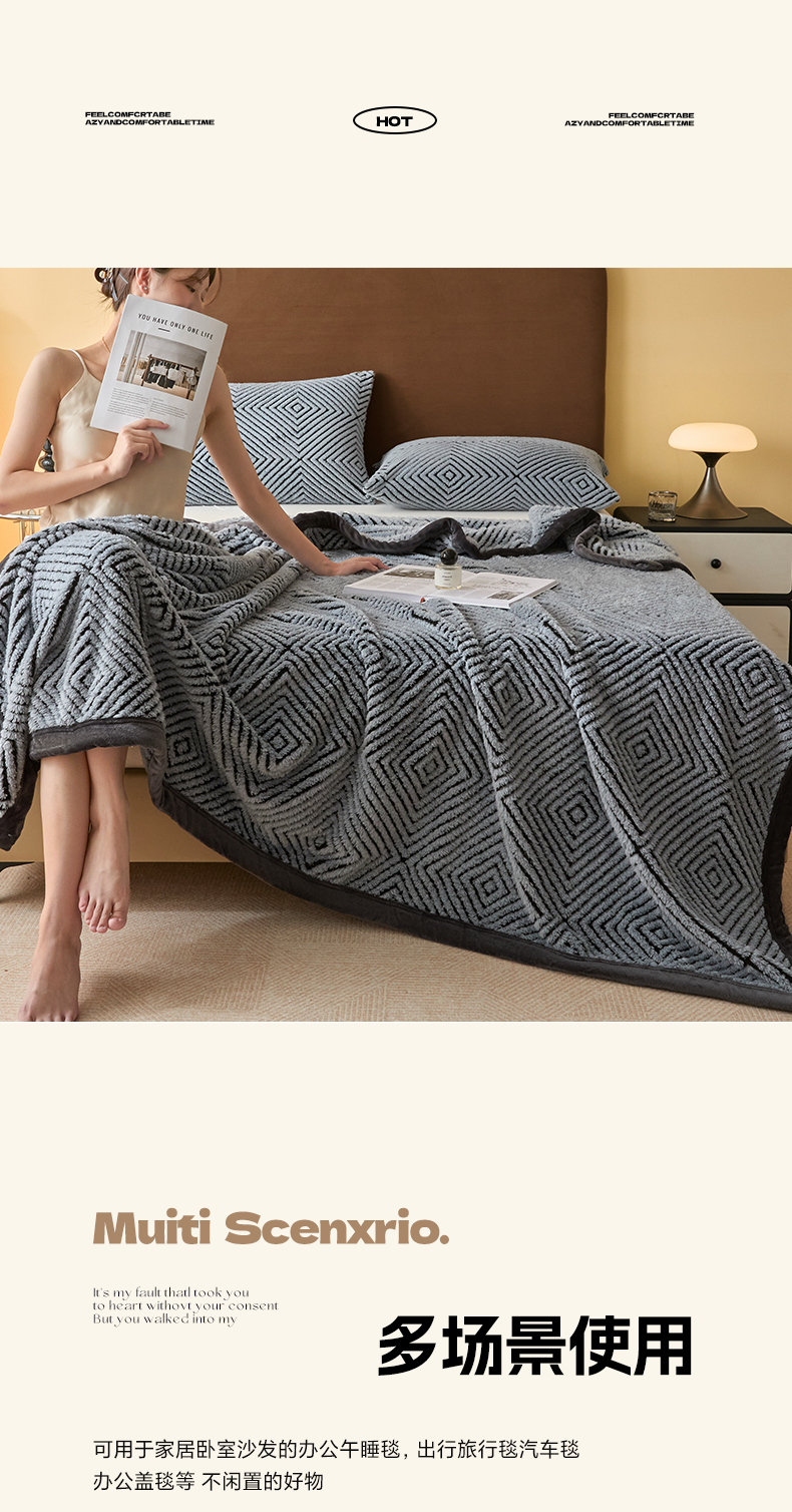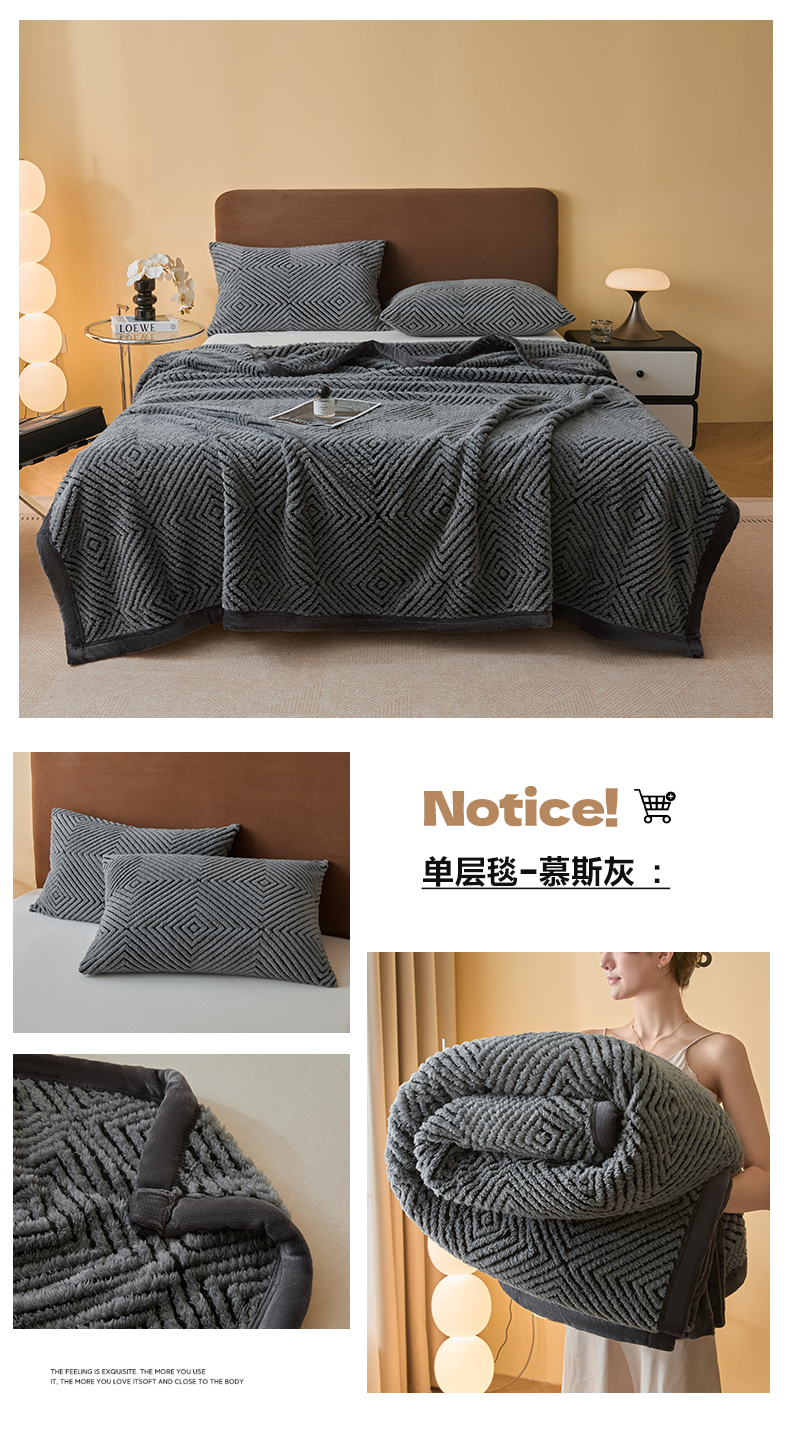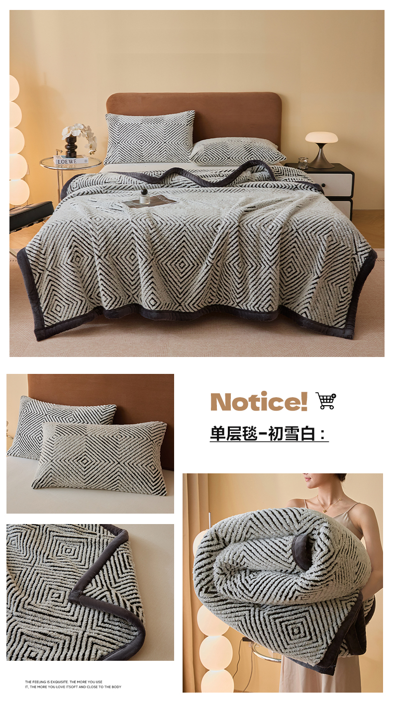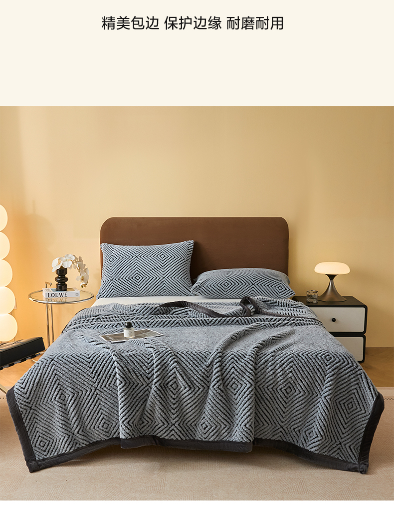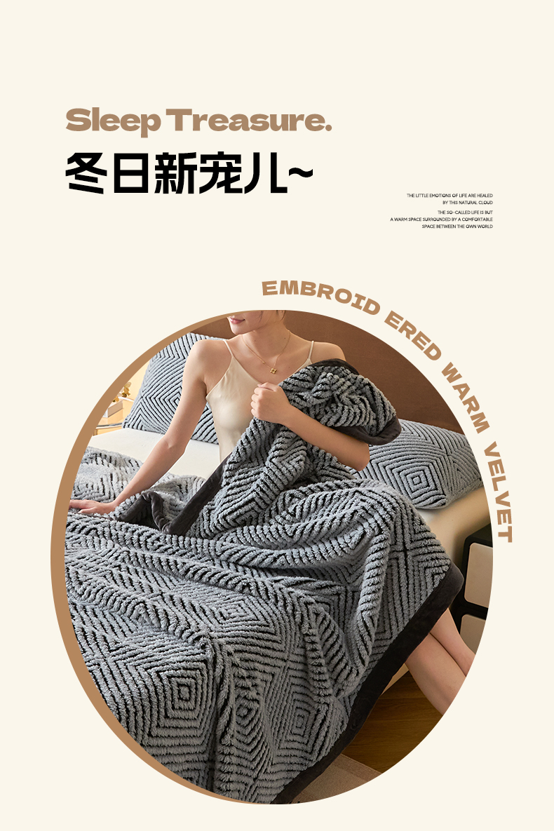 商品名称:(总)欧邦 2025新款轻奢暖阳绒提花双面绒单层毯毯子
