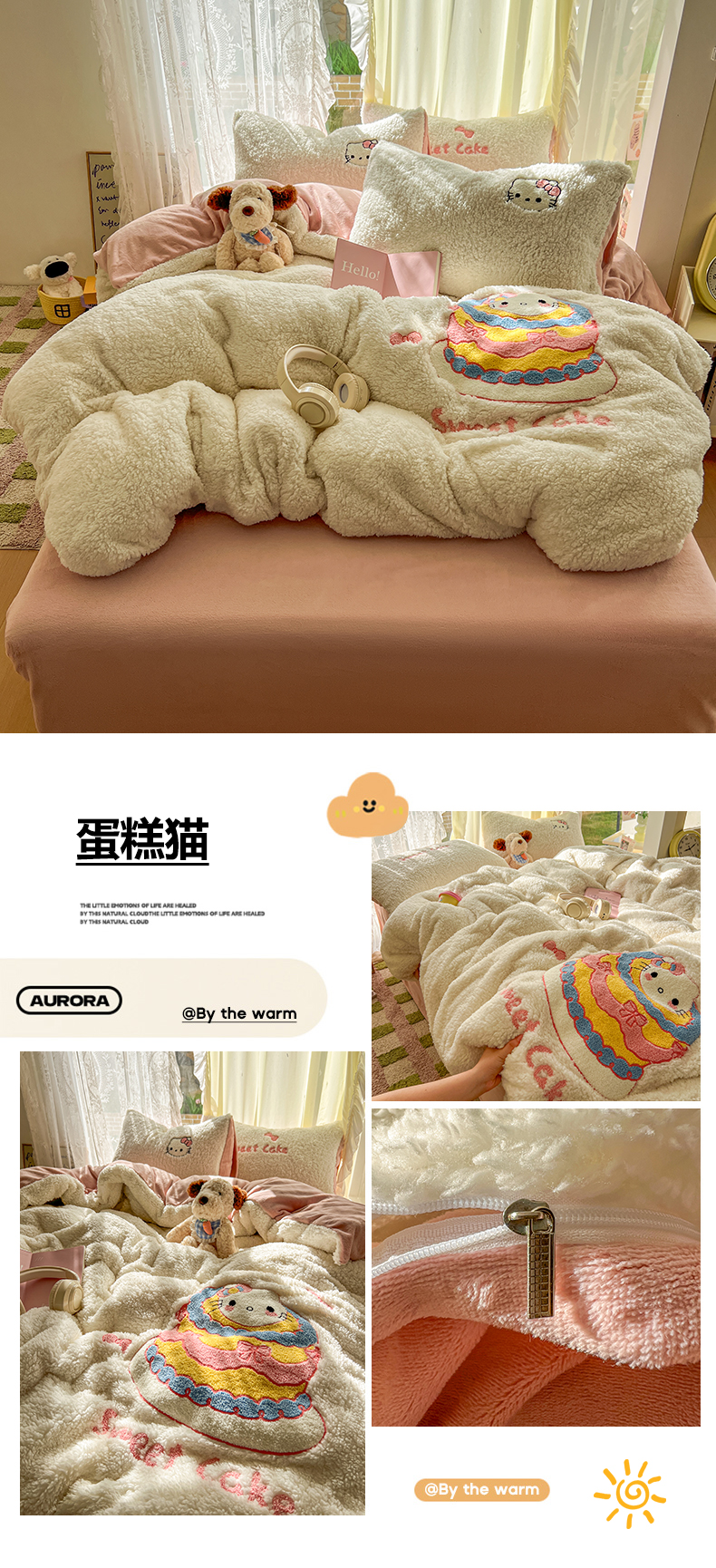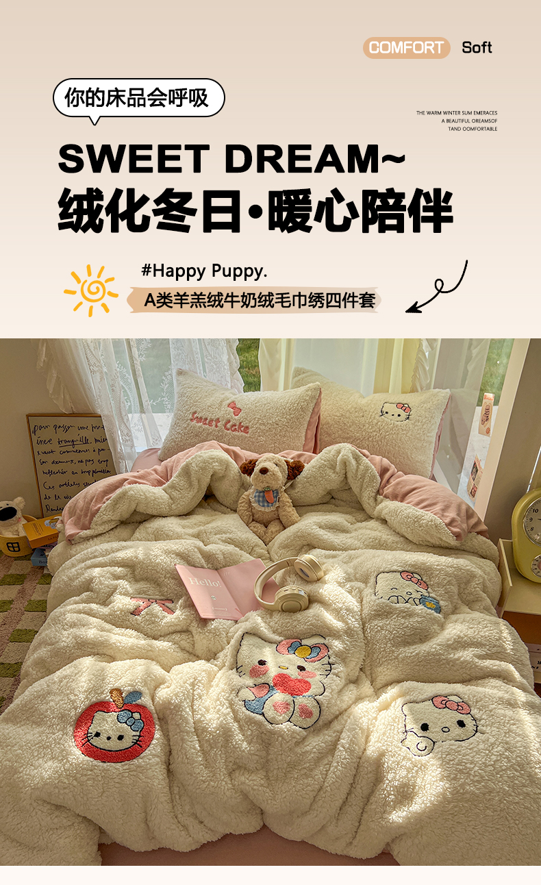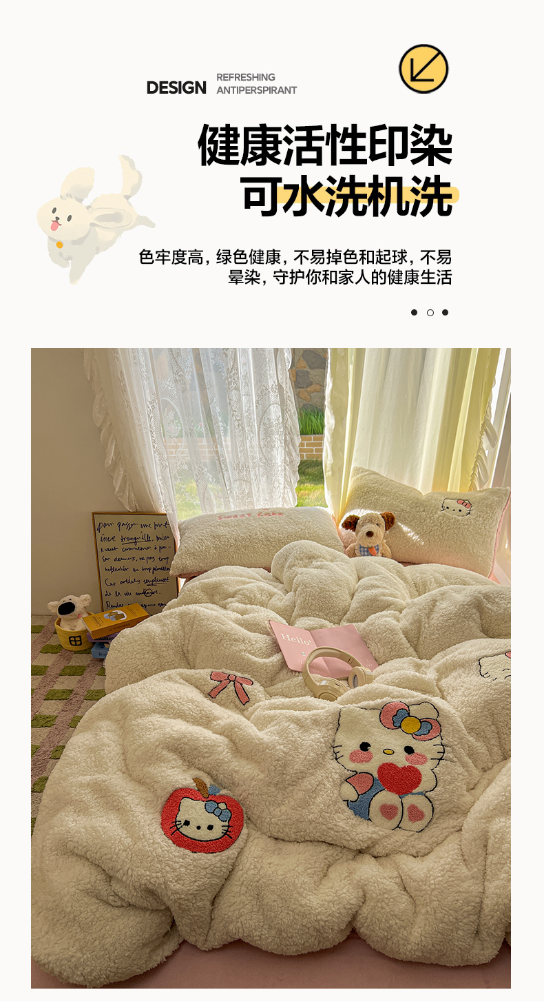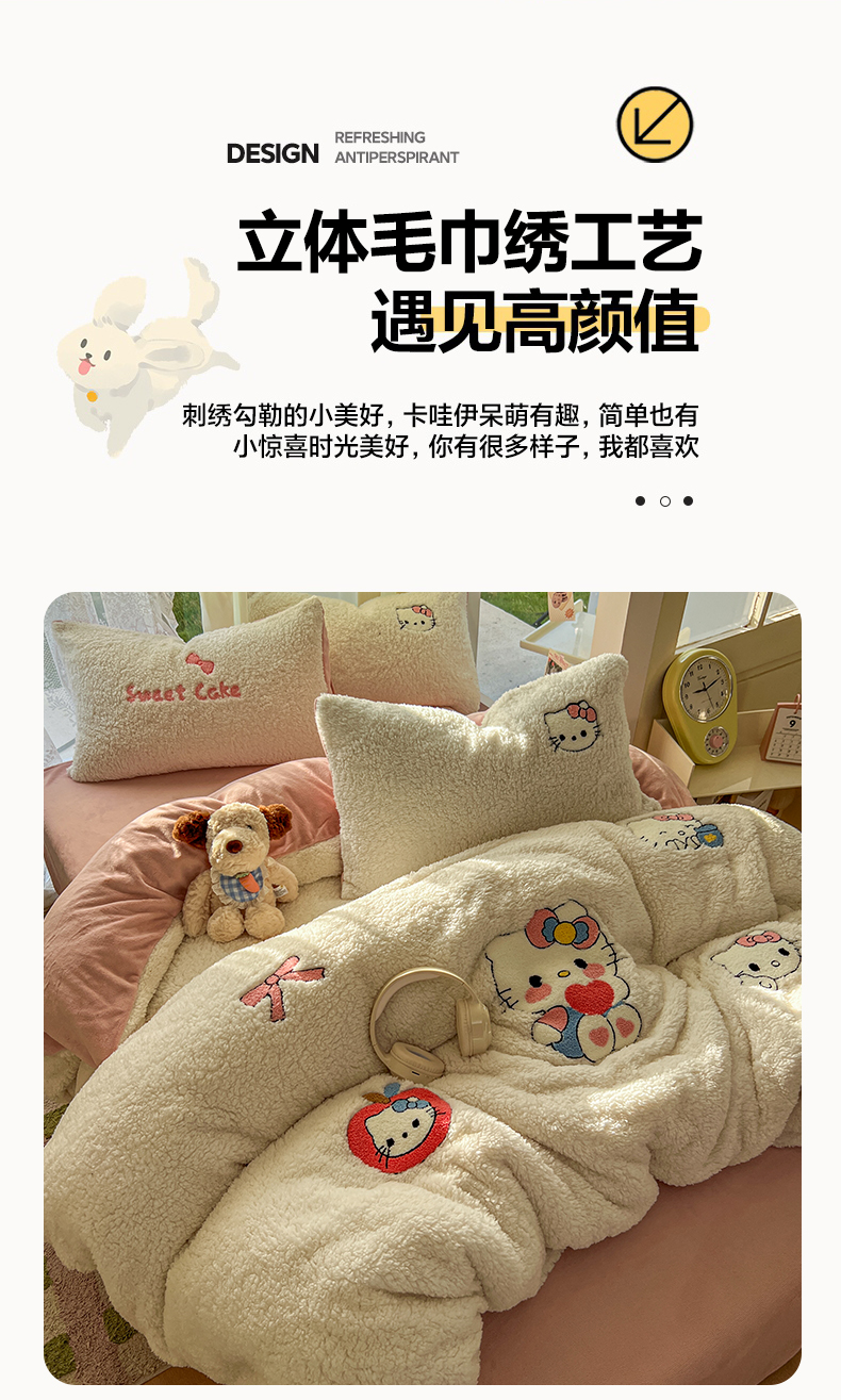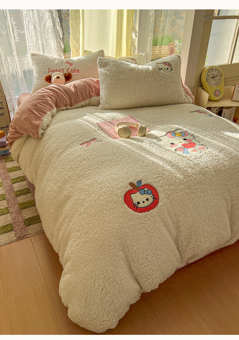 当前位置: 91家纺网 > 商品网购 > 床品套件 > 四件套 > 羊羔绒四件套 > 颜选 2025新款卡通羊羔绒四件套 爱心猫