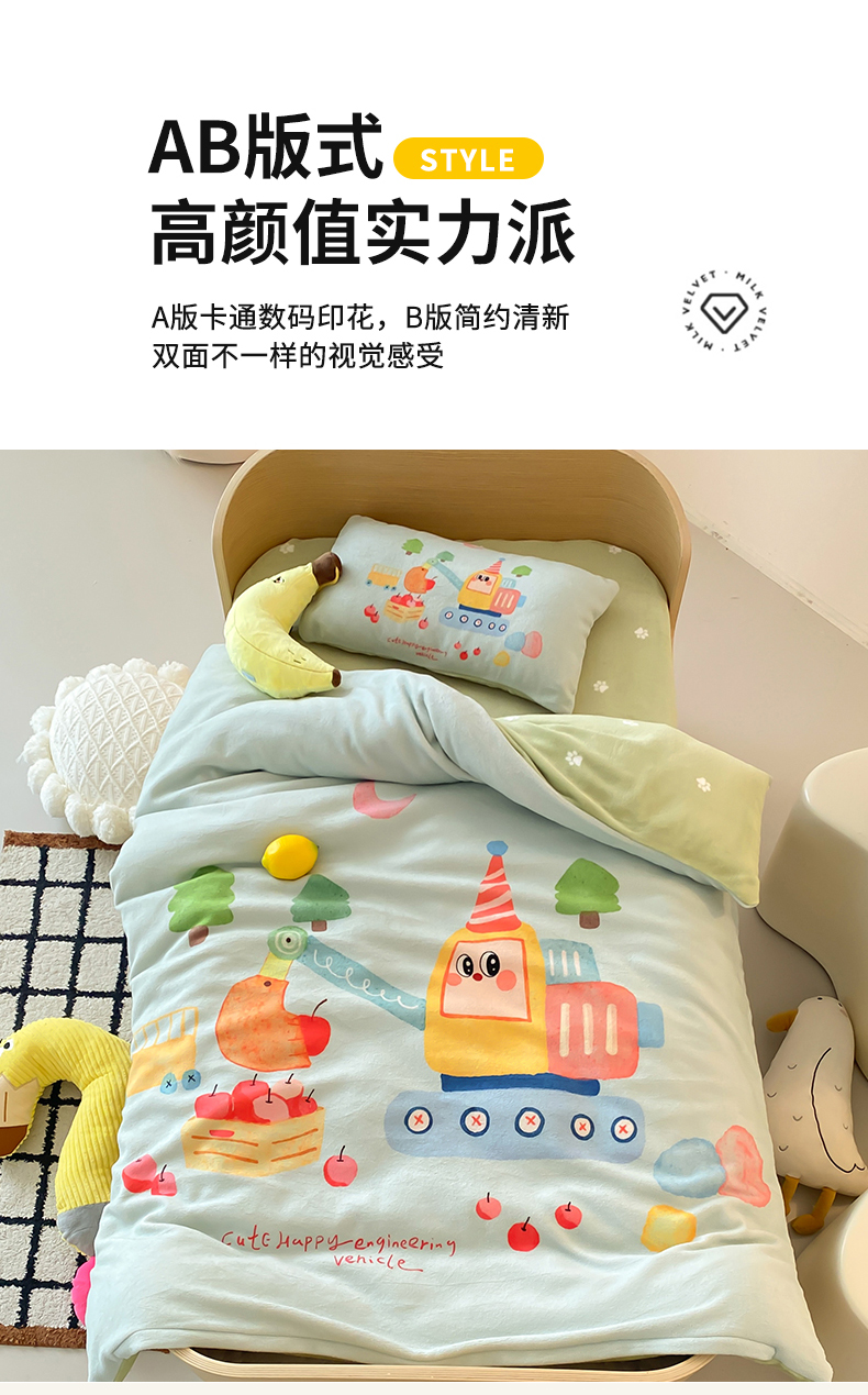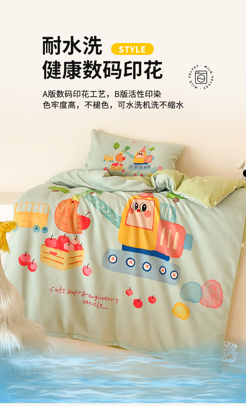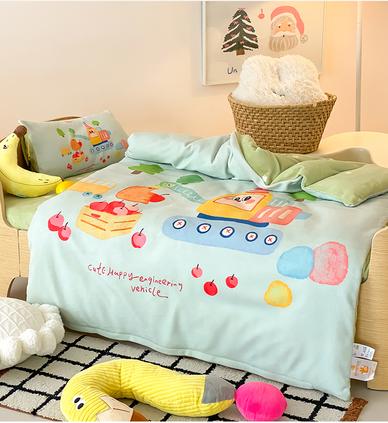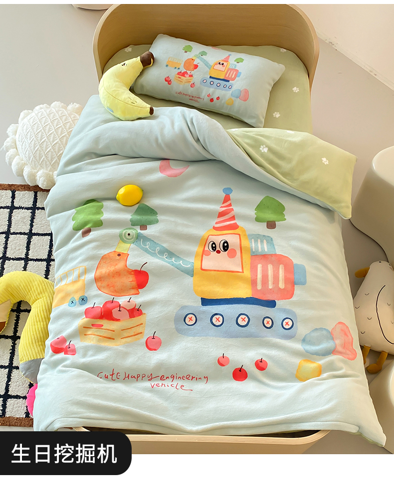 当前位置: 91家纺网 > 商品网购 > 床品套件 > 多件套 > 多件套 > 宝贝优选 2025新款A类卡通数码印幼儿园儿童牛奶绒套件 生日挖掘机