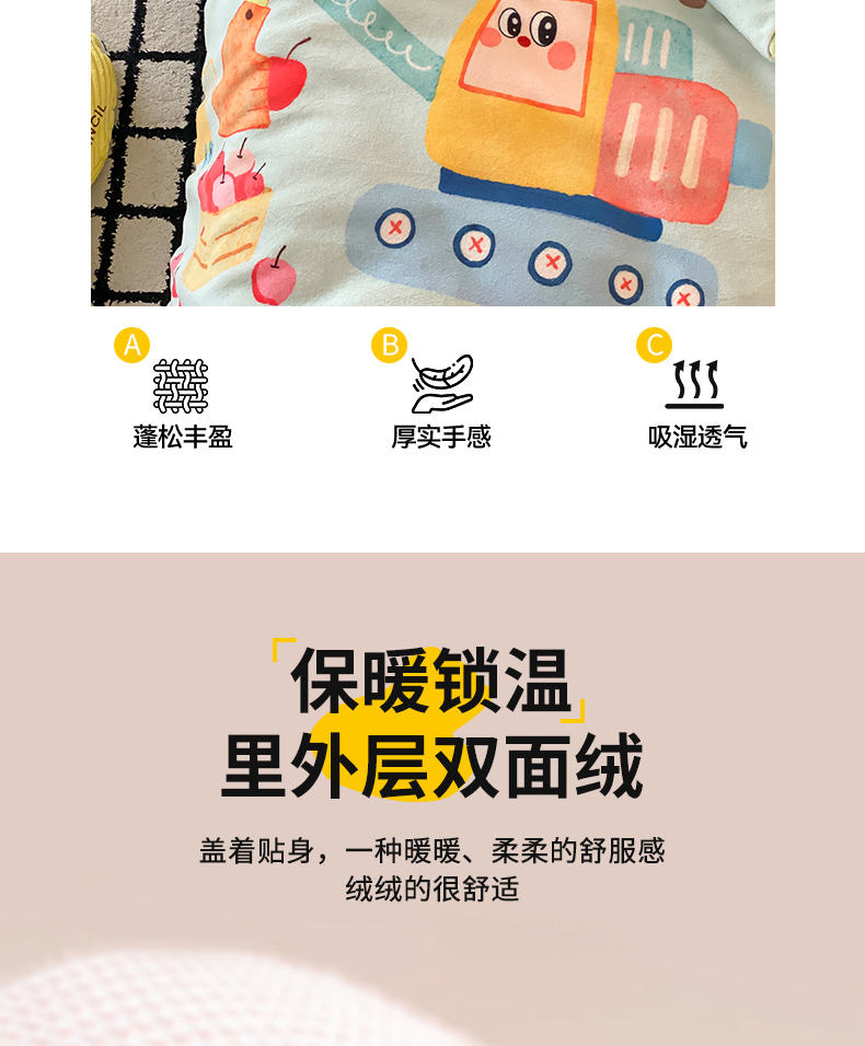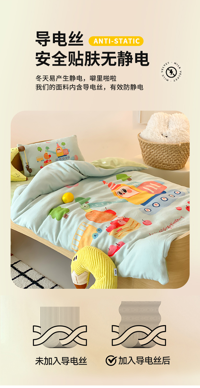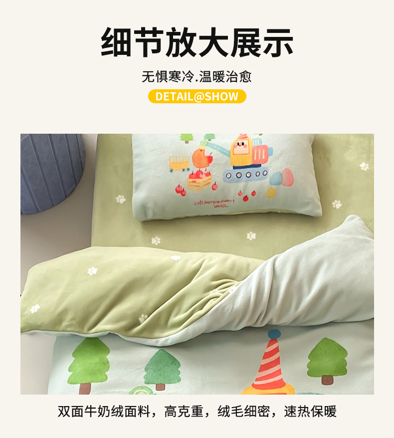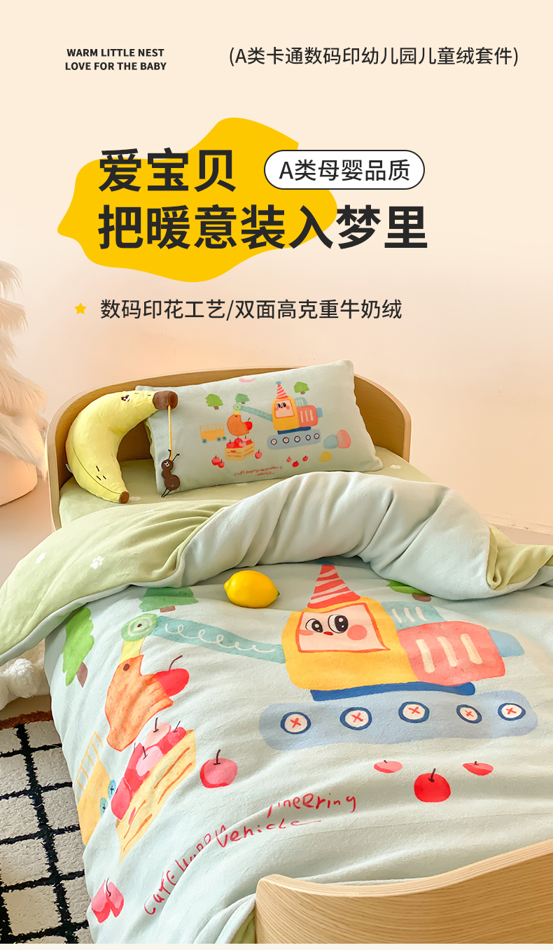 当前位置: 91家纺网 > 商品网购 > 床品套件 > 多件套 > 多件套 > 宝贝优选 2025新款A类卡通数码印幼儿园儿童牛奶绒套件 生日挖掘机