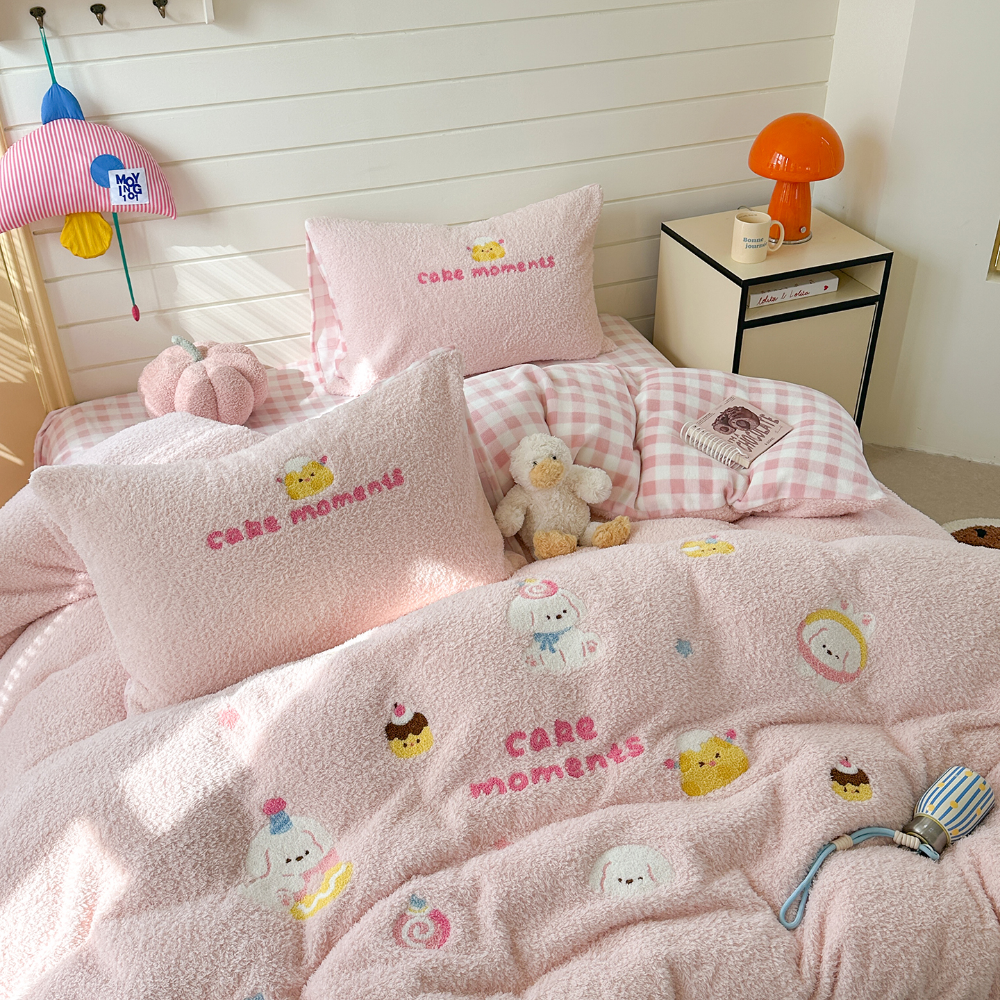 (总)柚子YOUTH 2025新款加厚牛奶绒卡通毛巾绣四件套-印加绣送同款毛毯,蛋糕小狗,公主猫,头套猫,兔兔花园,小伙伴,雪纳瑞