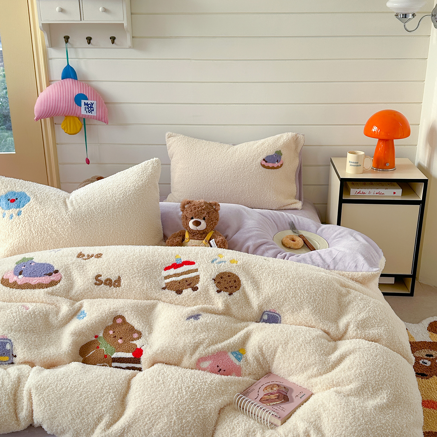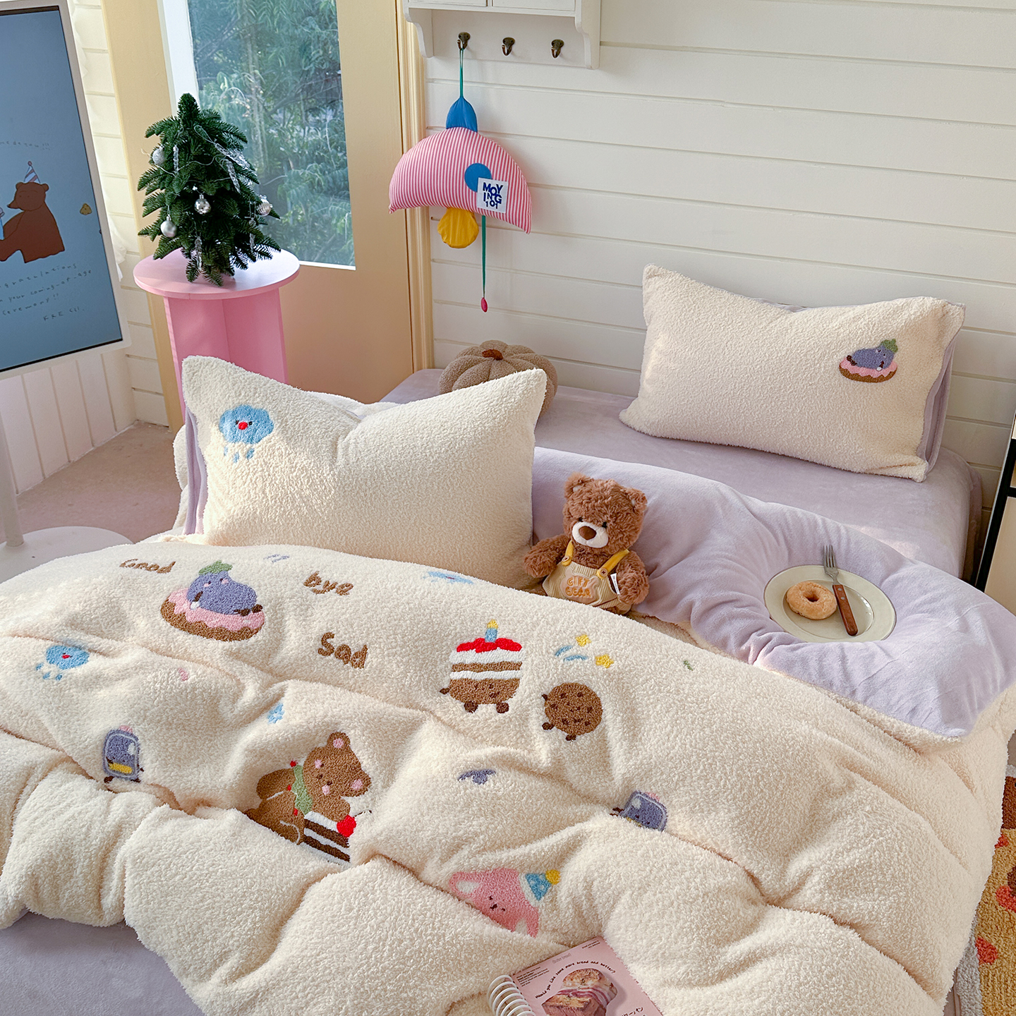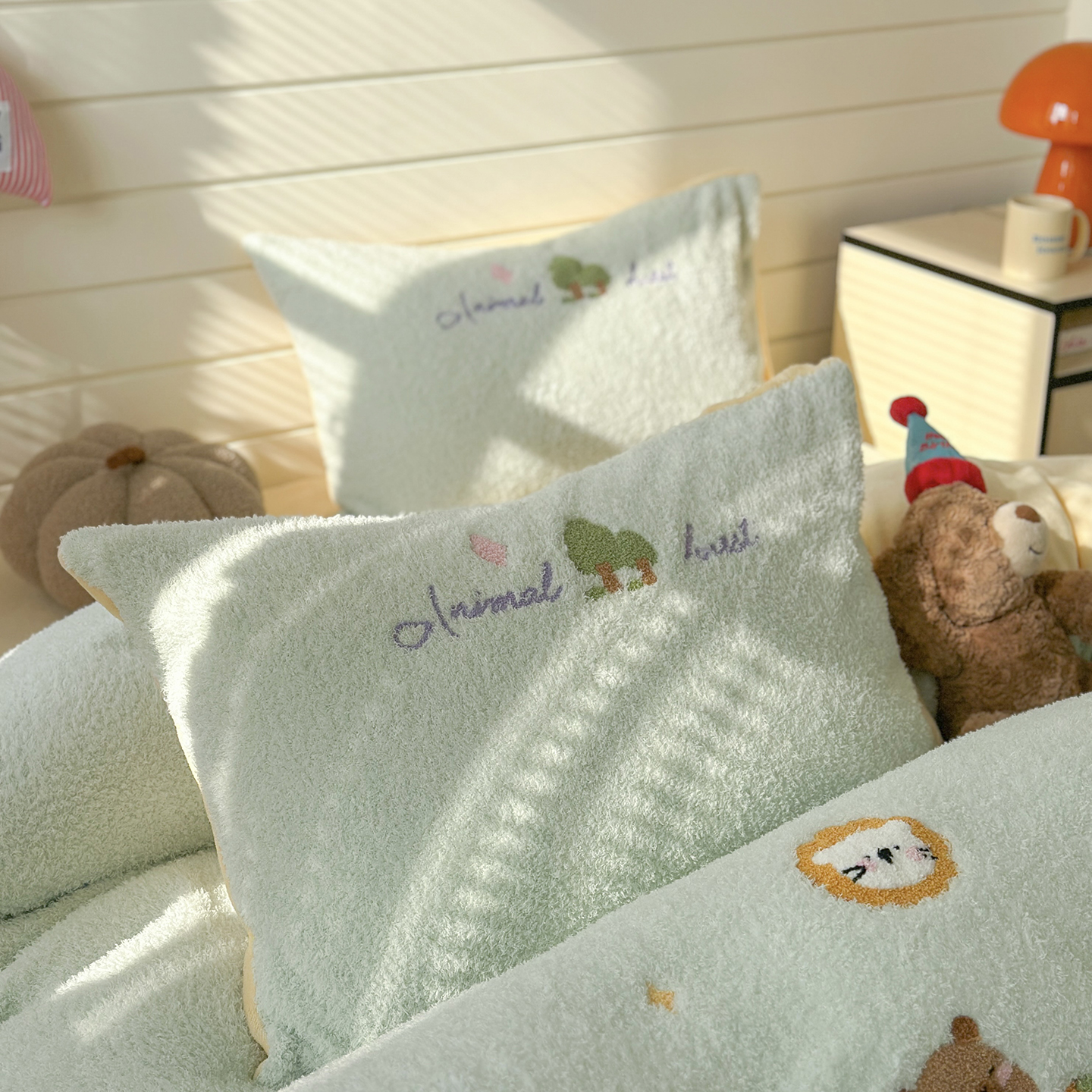 (总)柚子YOUTH 2025新款双面泰迪绒毛巾绣四件套,甜甜圈,快乐企鹅,森林聚会,甜酷KT,小茄子,雪人王国