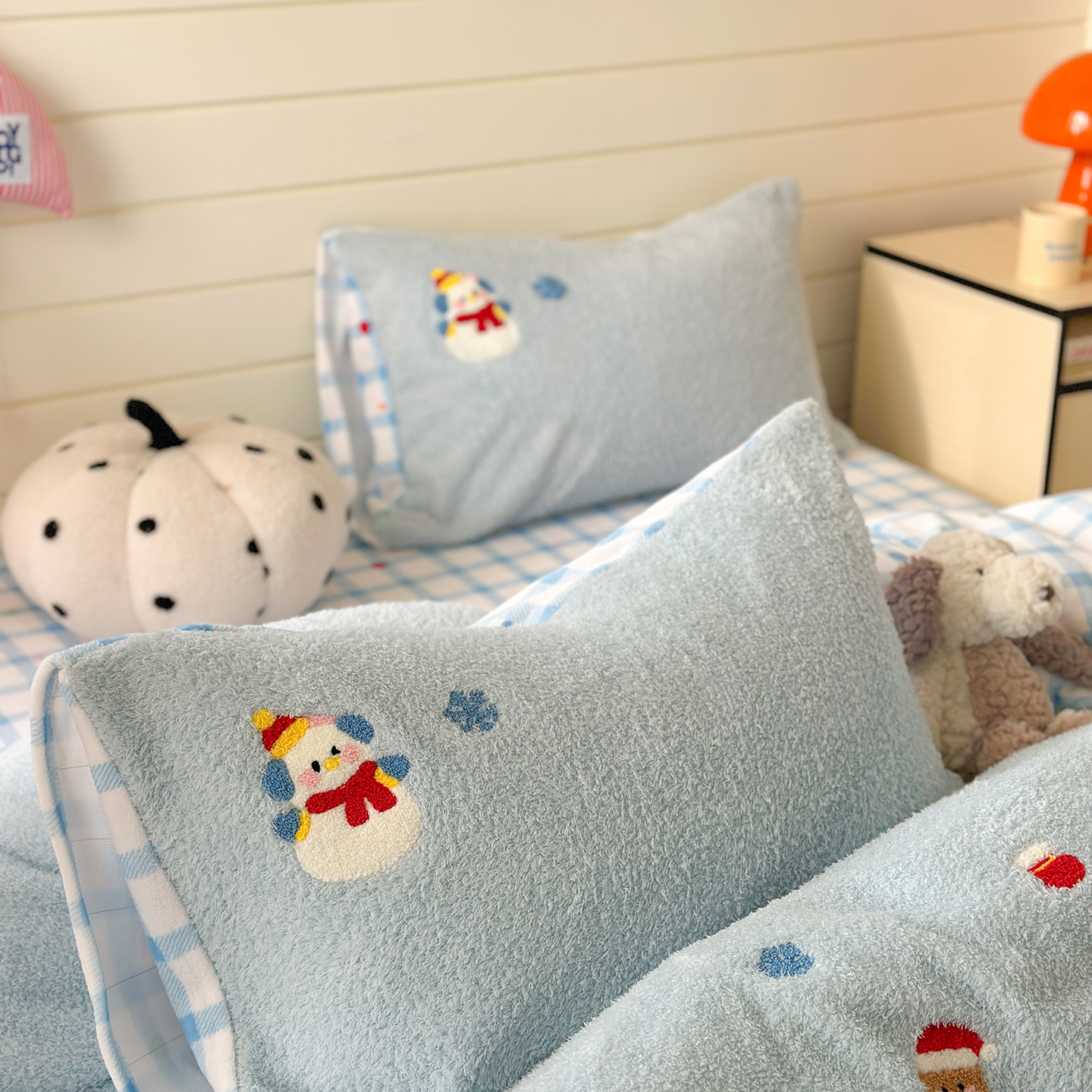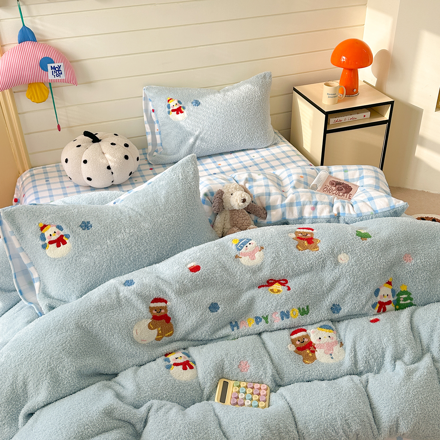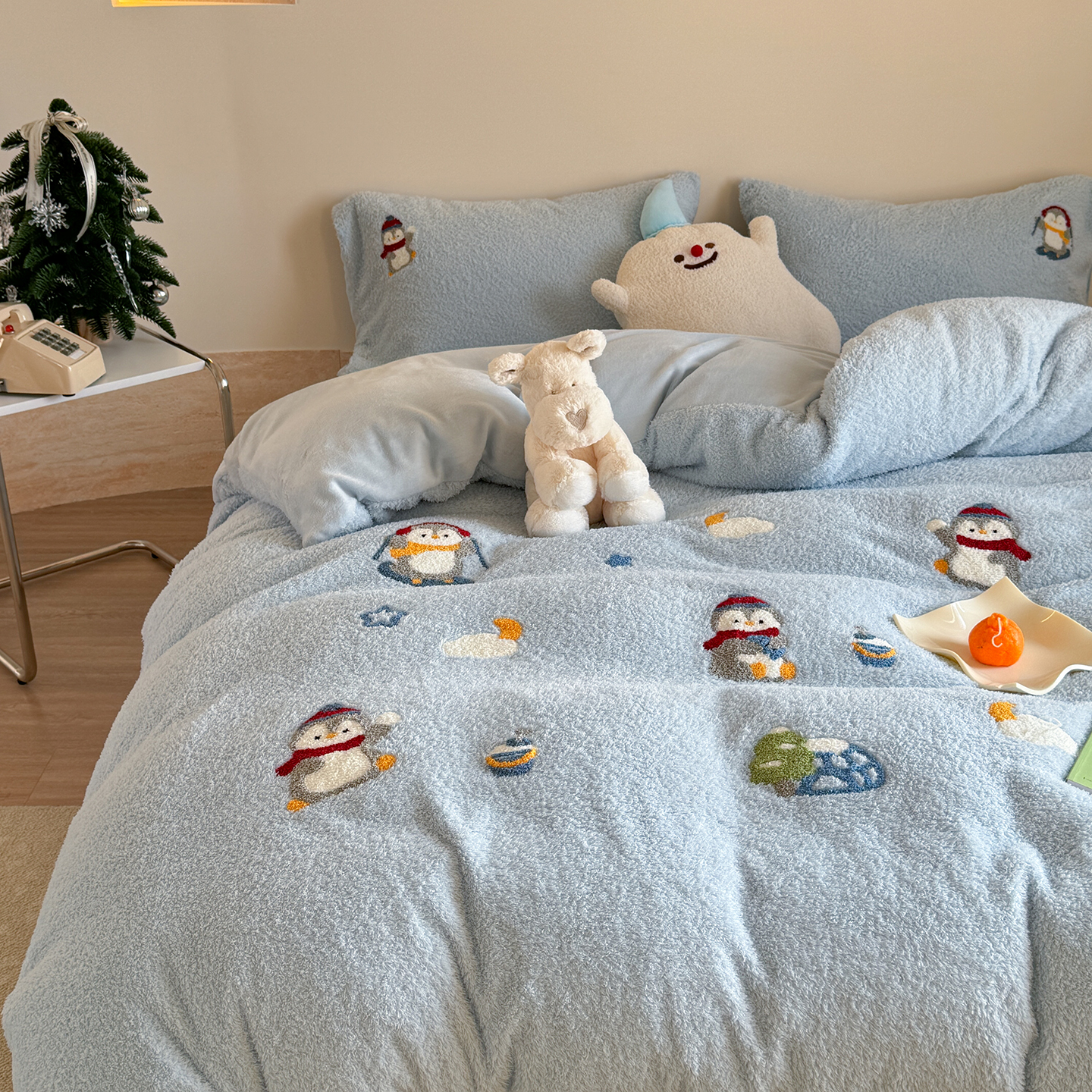 柚子YOUTH 2025新款双面泰迪绒毛巾绣四件套 快乐企鹅