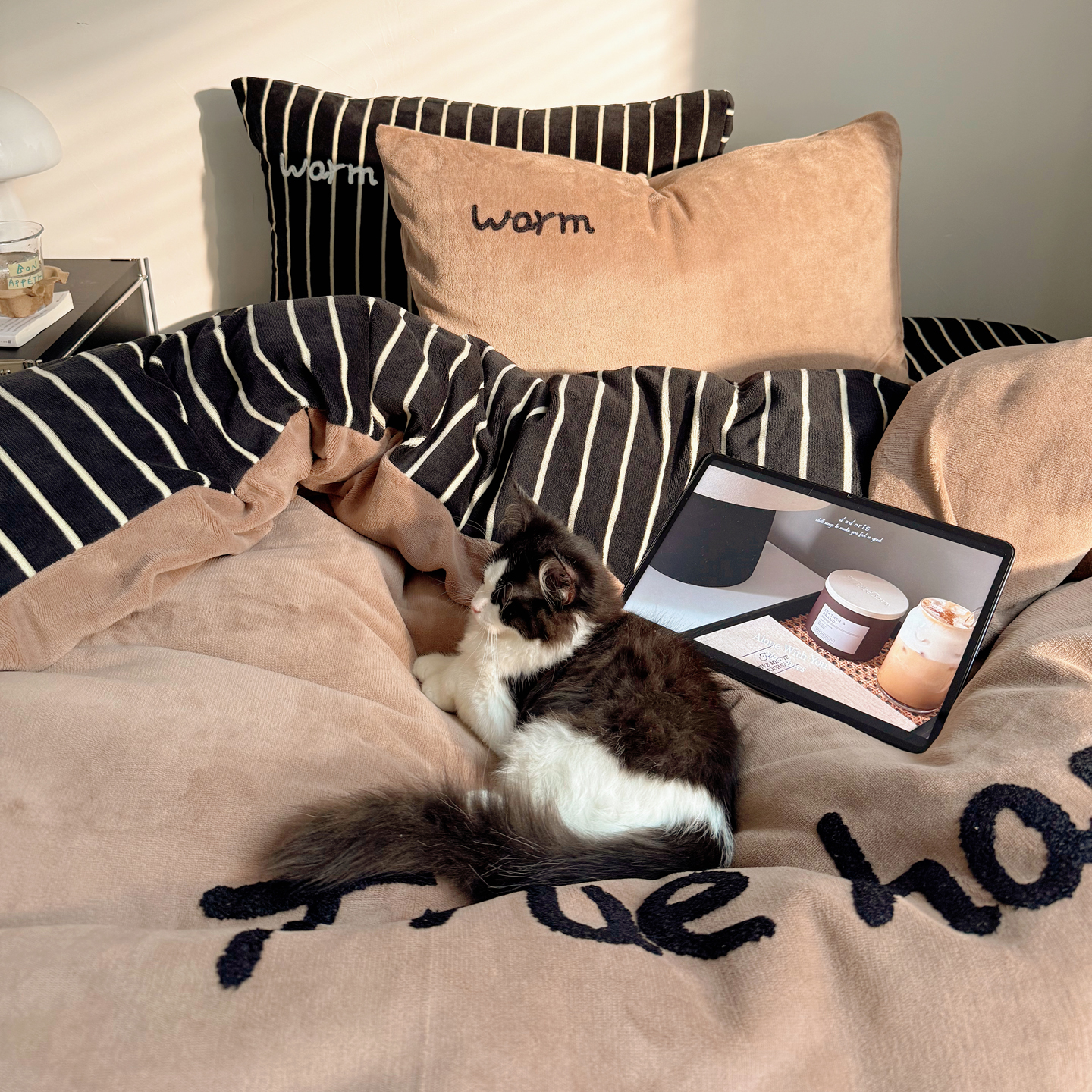 (总)桃喜 2026春夏新款全棉纯棉ins简约系列四件套(会员-3),费尔岛小猫,粉星星,复古费尔岛,灰星星