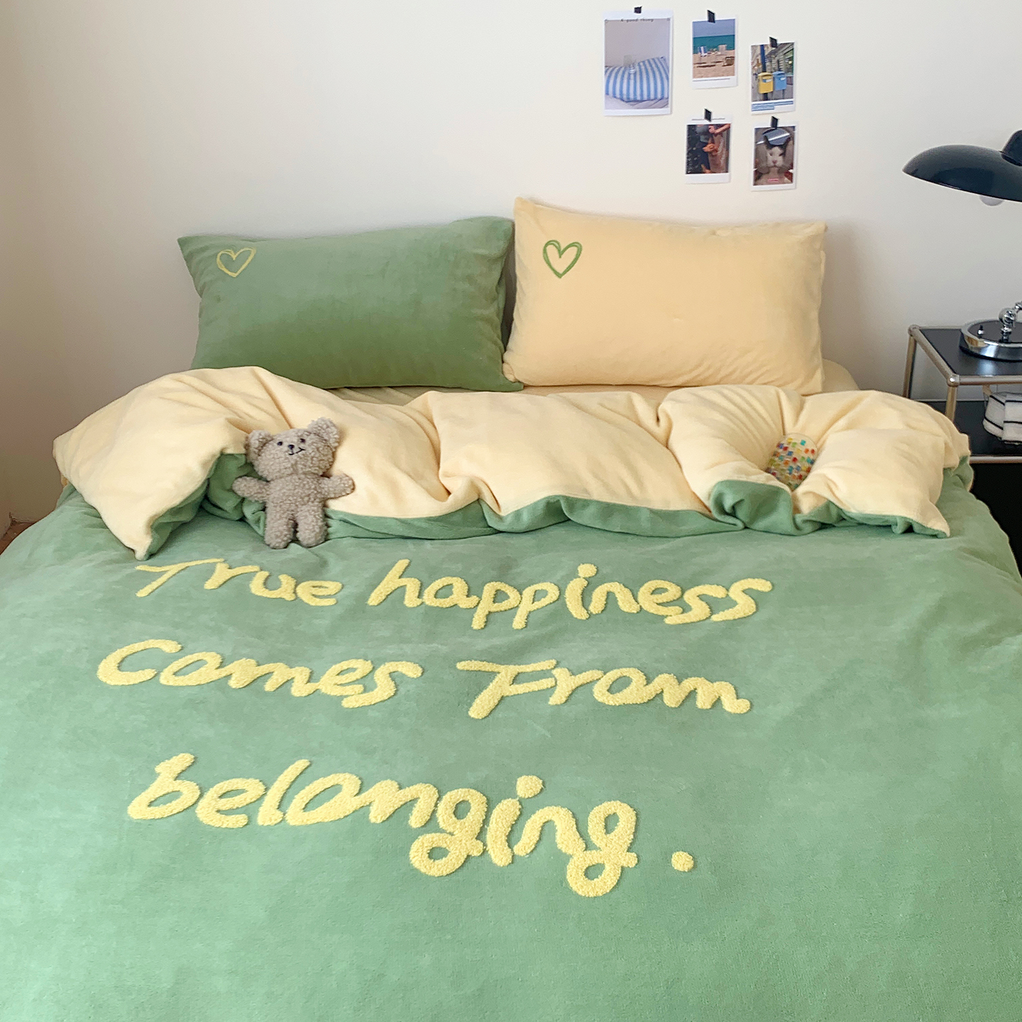 桃喜 2025新款韩系纯色200g牛奶绒柔软毛巾绣刺绣四件套 牛油果绿