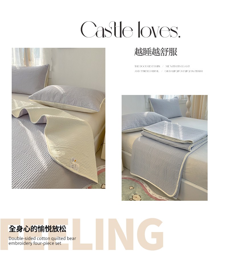 (总)妮可 2025新款荷叶边纯棉绗缝四季款多功能床盖,奶油黄,冰湖蓝,豆豆沙,梦幻粉,气质灰,森林绿,芝兰紫