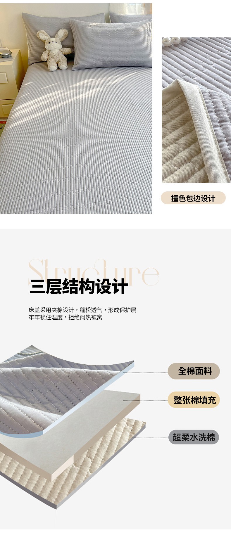 妮可 2025新款热款花型印花全棉夹棉多功能床垫-床盖 绅士灰