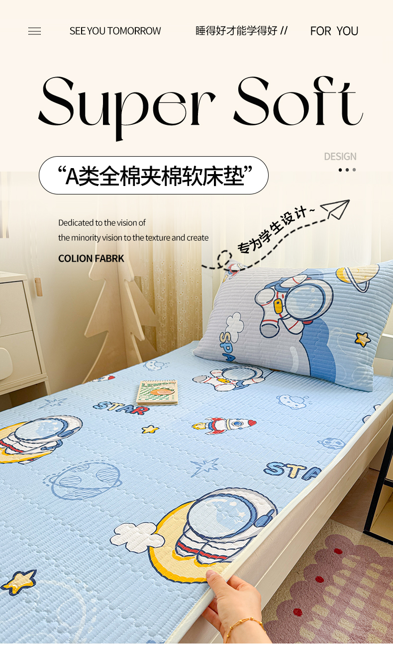 当前位置: 91家纺网 > 商品网购 > 床垫/床褥 > 普通床垫 > 妮可 2025热款学生床全棉夹棉多功能床垫-床盖 宇航员
