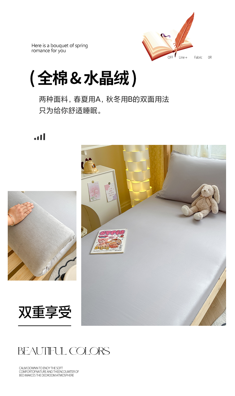 (总)妮可 2025新款四季款双面可用一面棉一面220克牛奶绒夹棉床单床盖,蓝芙-芳华,灰茉-格调,奶芙-小美满,暖芙-小桔,粉芙-漫花,绿茉-遇见