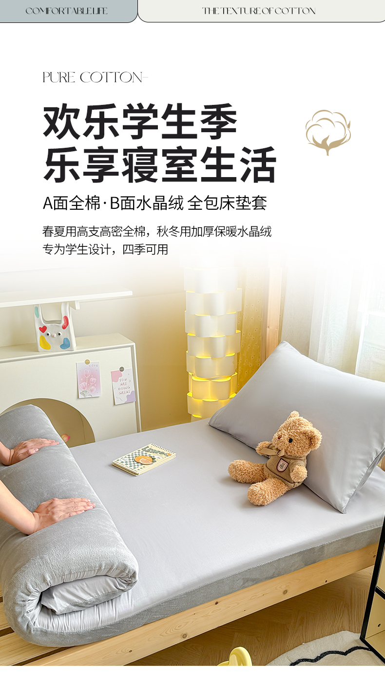 商品名称:妮可 2025热款花型全包床垫套褥子套(AB双版A全棉B绒) 绅士灰