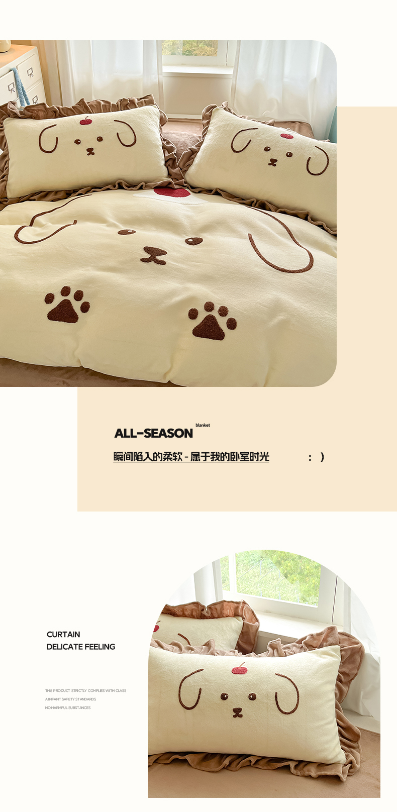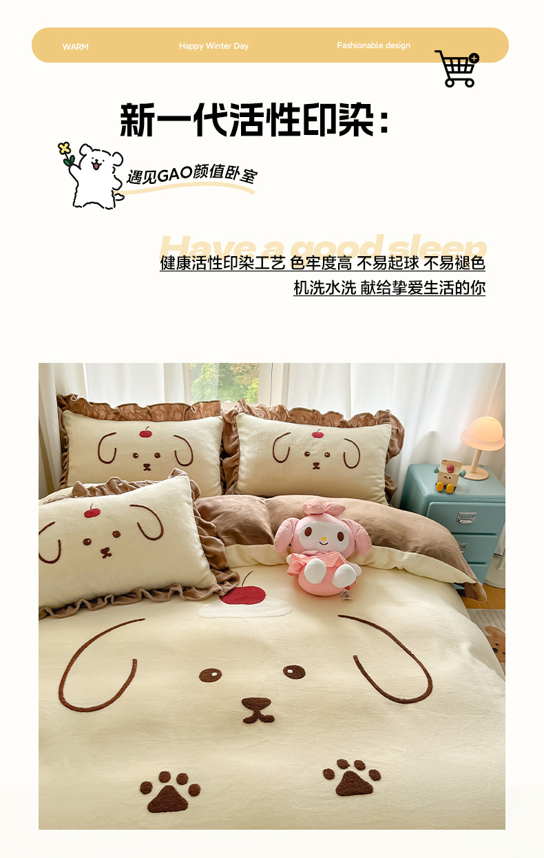当前位置: 91家纺网 > 商品网购 > 床品套件 > 四件套 > 牛奶绒四件套 > 梦之岛 2025新款高克重大版牛奶绒卡通毛巾绣四件套 可爱狗-浅驼