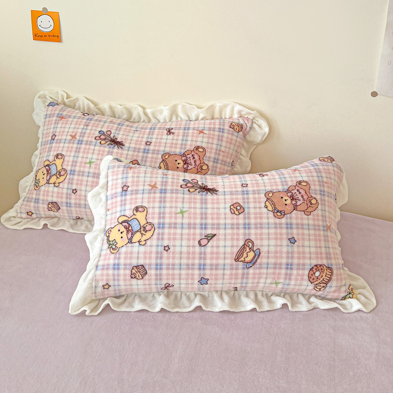 眷恋家纺 2025新款高克重牛奶绒花边枕套枕头套 露营日记