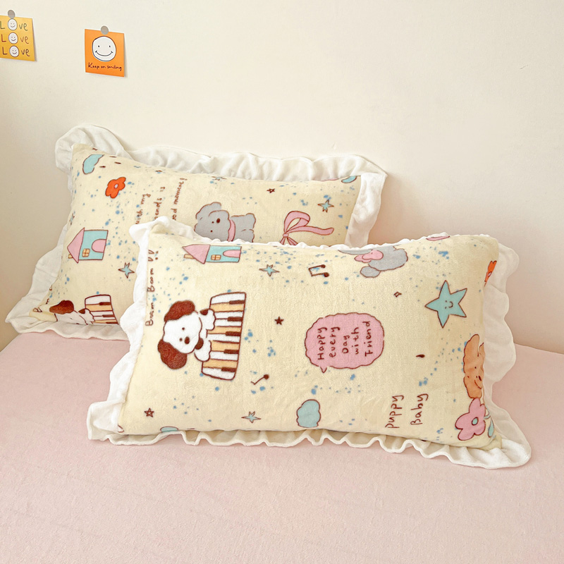 (总)眷恋家纺 2025新款高克重牛奶绒花边枕套枕头套,动物家园,花园狗,快乐伙伴,蓝格猫咪,露营日记,猫咪与熊,奶油小狗,甜心猫咪,温馨小熊,小飞机,星星宠物