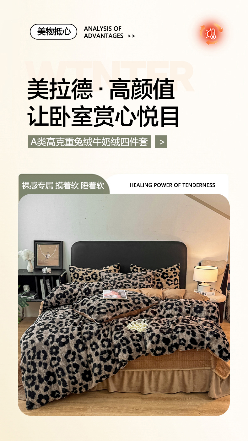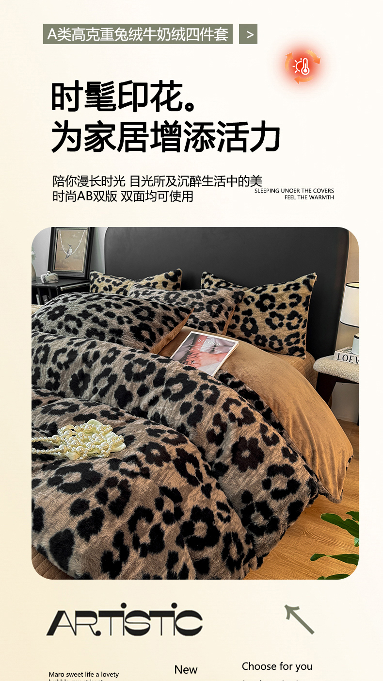 (总)乐窝家纺仓储 2025新款【8斤重】轻奢复古高克重美拉德兔兔绒牛奶绒床单款床笠款床盖款四件套单床单单被套枕套(日发50套优惠8元一套),豹纹咖,豹纹灰,轮回,花语,蝶舞,虎纹