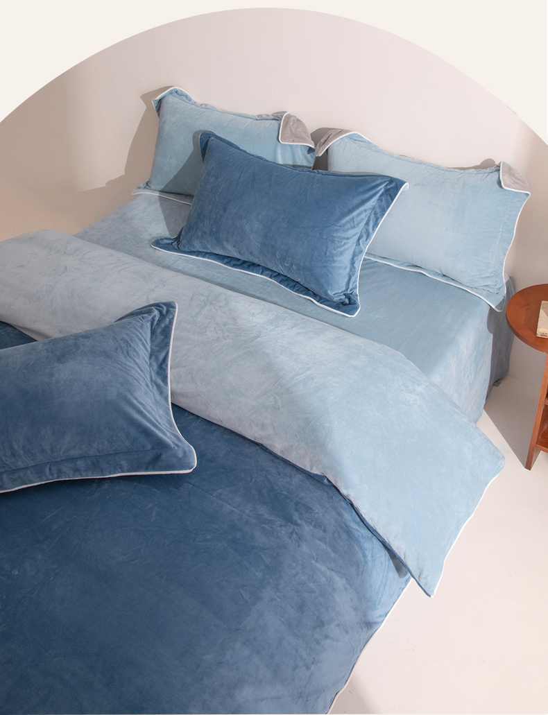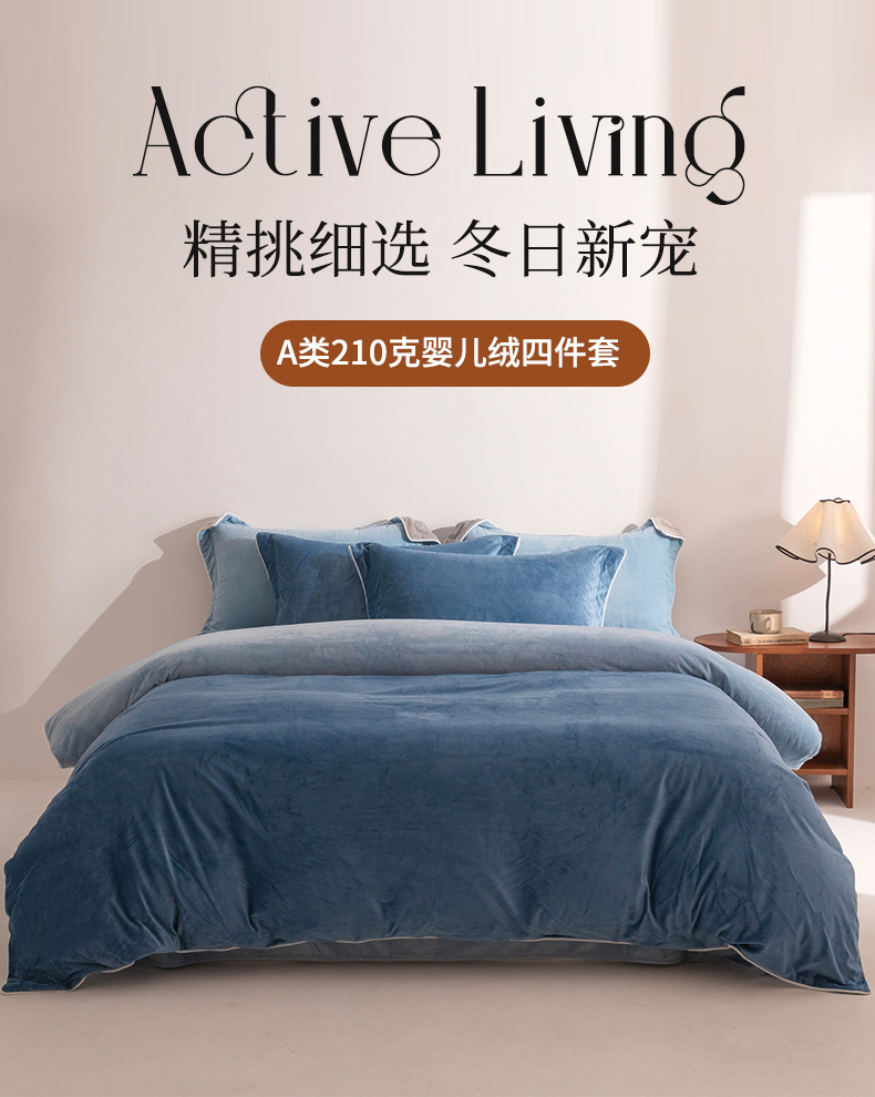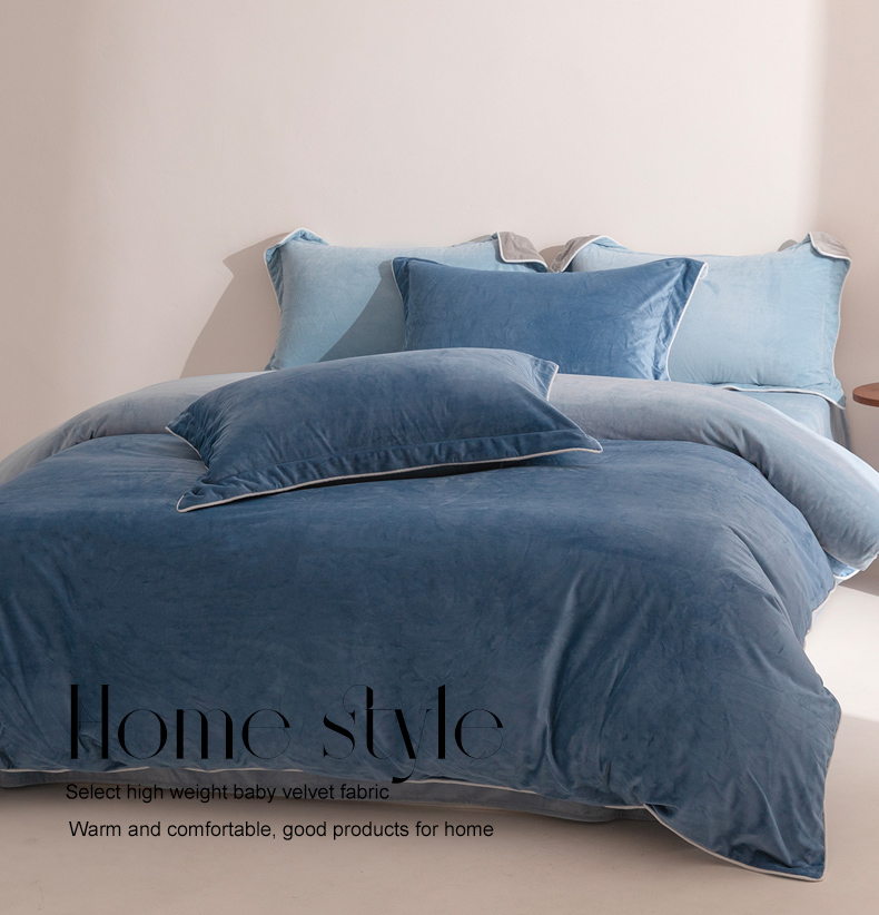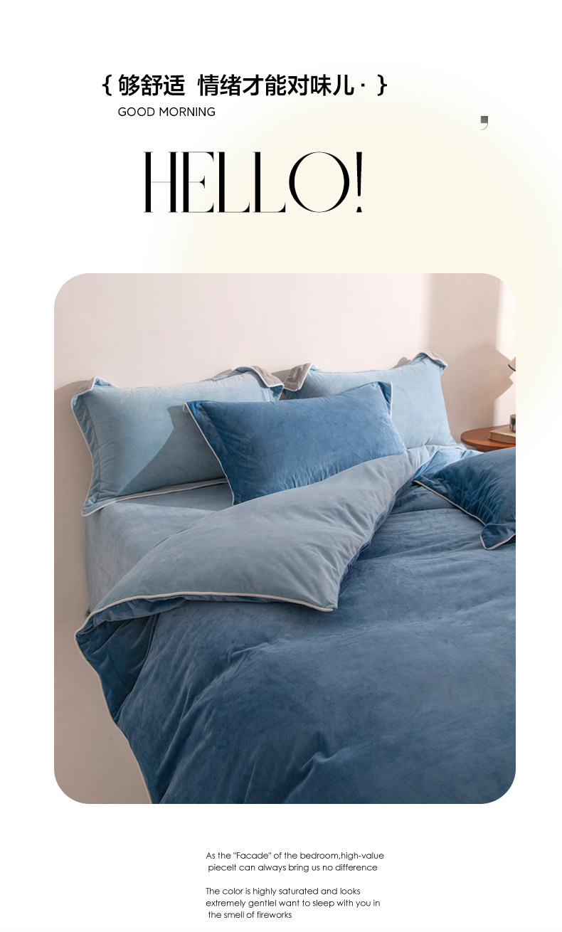 商品名称:安力森/诚臻酒店用品 2025新款麻绳婴儿绒四件套秋冬加厚亲肤保暖卧室床品套件 雾兰-浅蓝