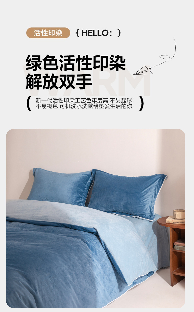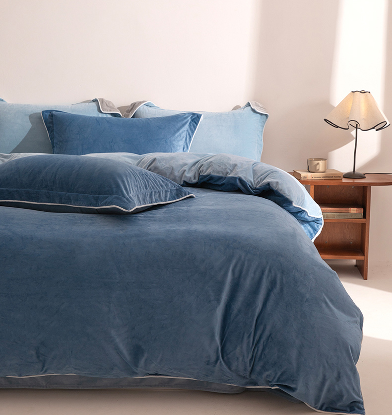 安力森/诚臻酒店用品 2025新款麻绳婴儿绒四件套秋冬加厚亲肤保暖卧室床品套件 雾兰-浅蓝