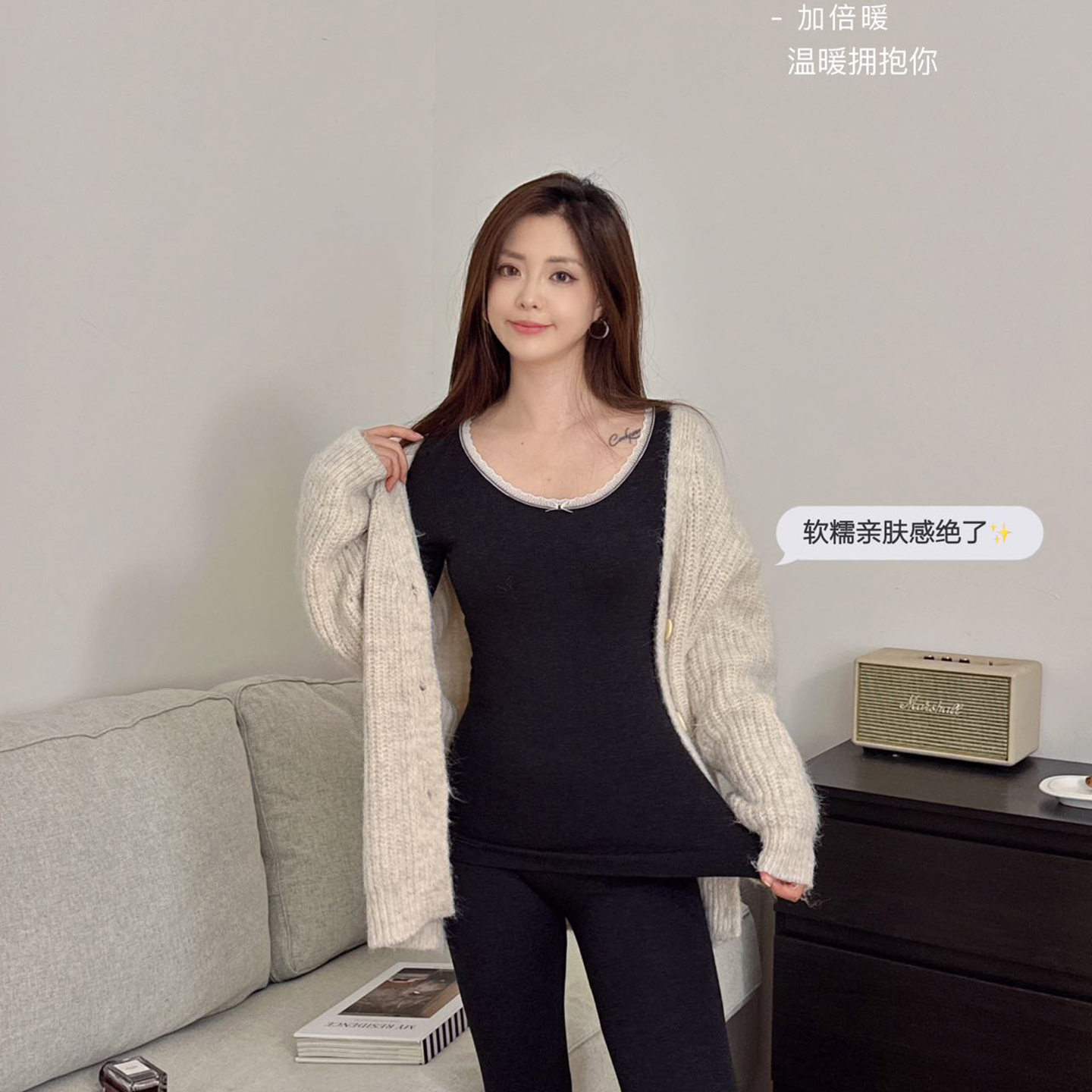 当前位置: 91家纺网 > 商品网购 > 居家日用 > 睡衣/家居服套装 > 妍景家居生活馆 2025新款轻感圆领秋衣秋裤套装 黑灰色
