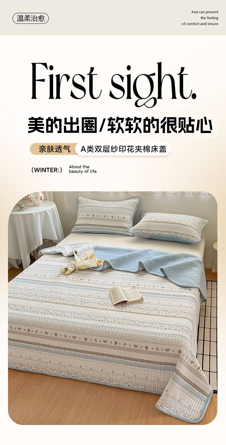 (总)瑞钰 2025新款A类双层纱印花夹棉床盖,半岛红茶,豹纹凯蒂,波点蓝,彩色爱心,点点蓝,豆寇,繁花,粉玉,海盐童话,花间兔,欢天小狗,奶球,普罗旺斯,青柠,无印红格,小蓝格,星星点点,紫小兔