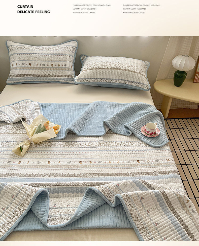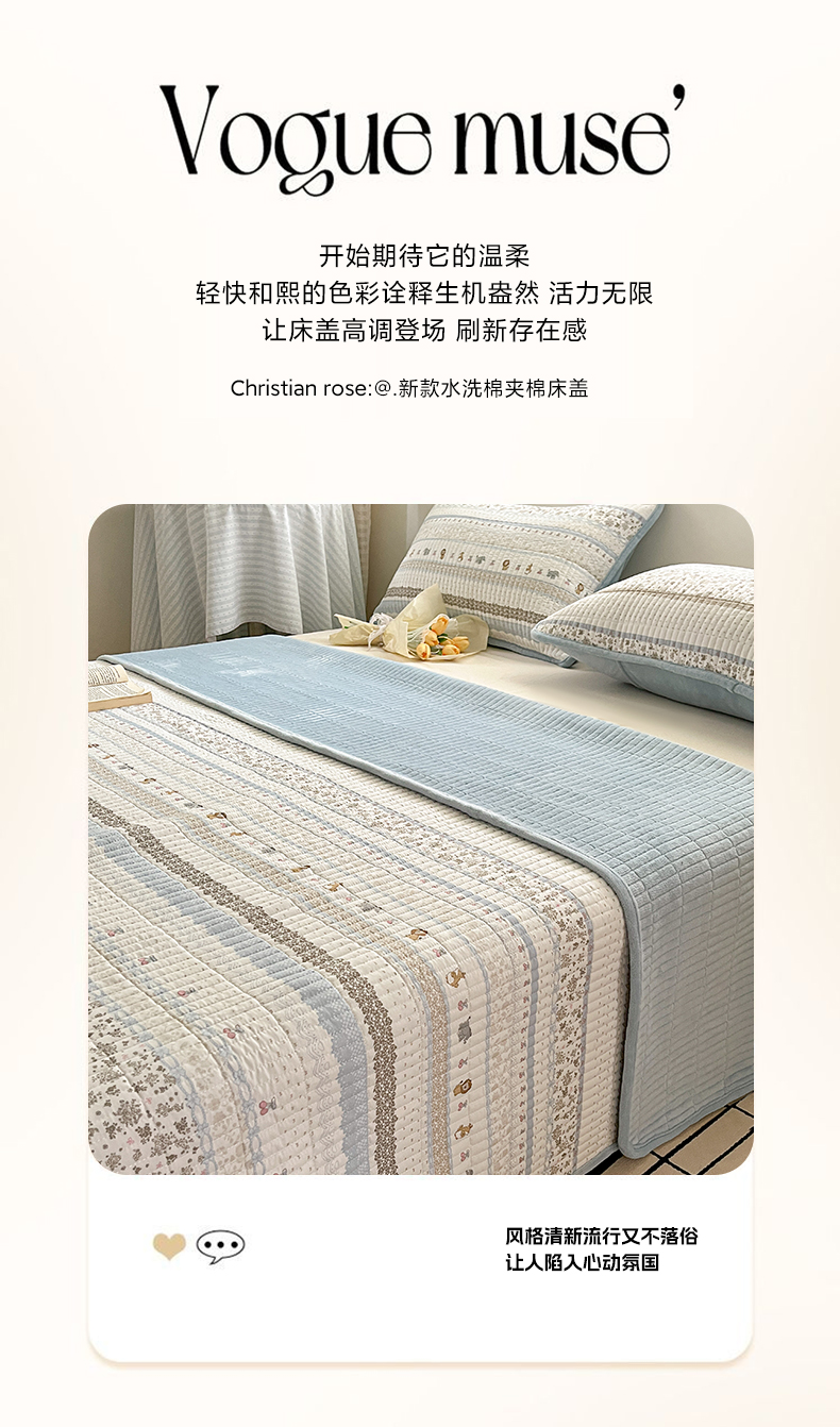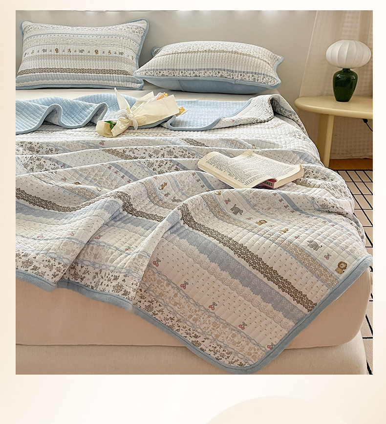 瑞钰 2025新款A类双层纱印花夹棉床盖 海盐童话