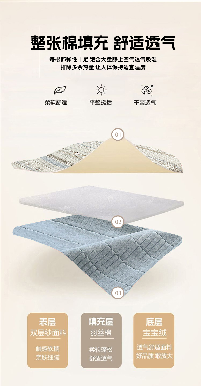 • 91家纺网 家纺一手货源 找家纺 瑞钰 2025新款A类双层纱印花夹棉床盖 海盐童话