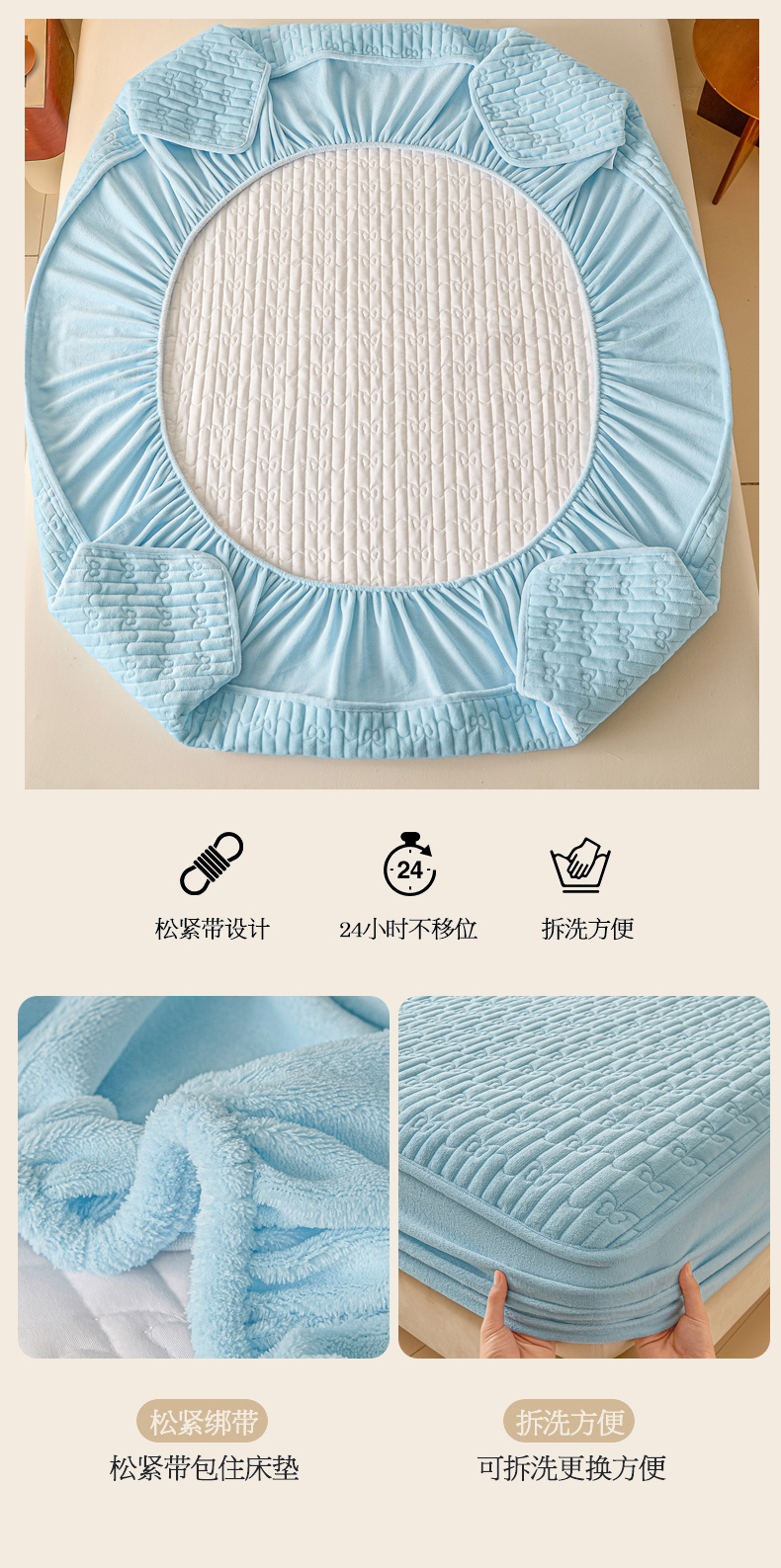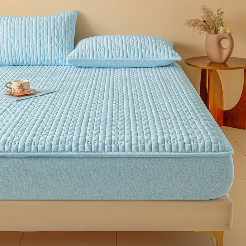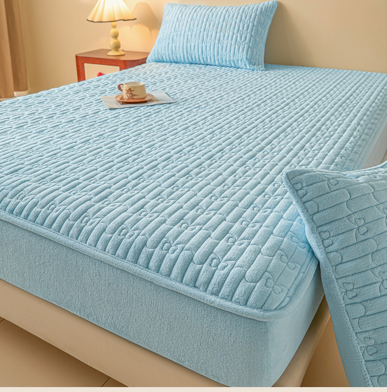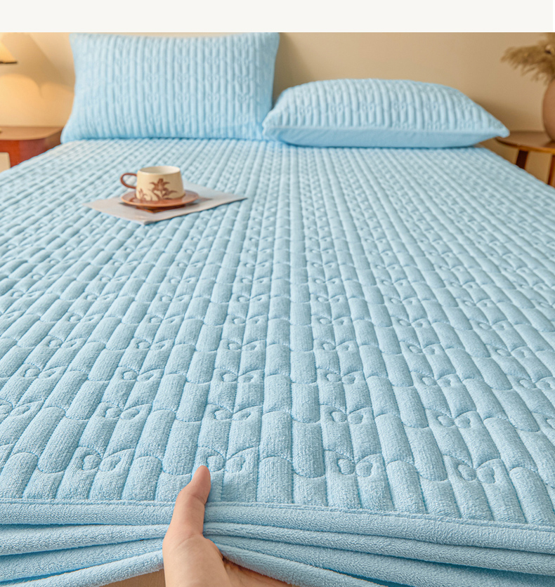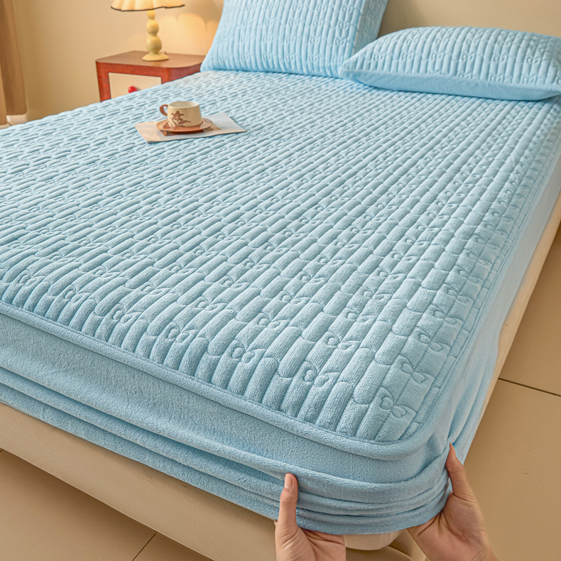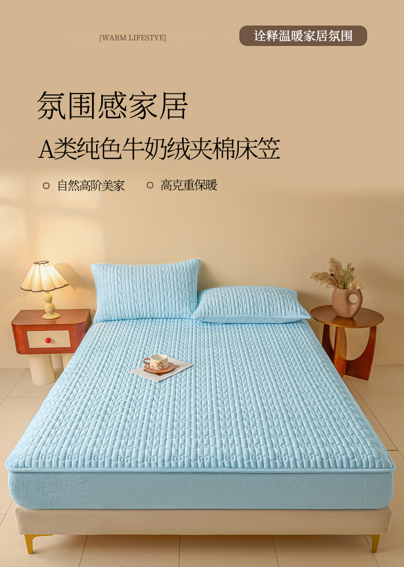 • 91家纺网 家纺一手货源 找家纺 Sweet dreams甜梦 2025新款A类纯色牛奶绒夹棉床笠 天蓝