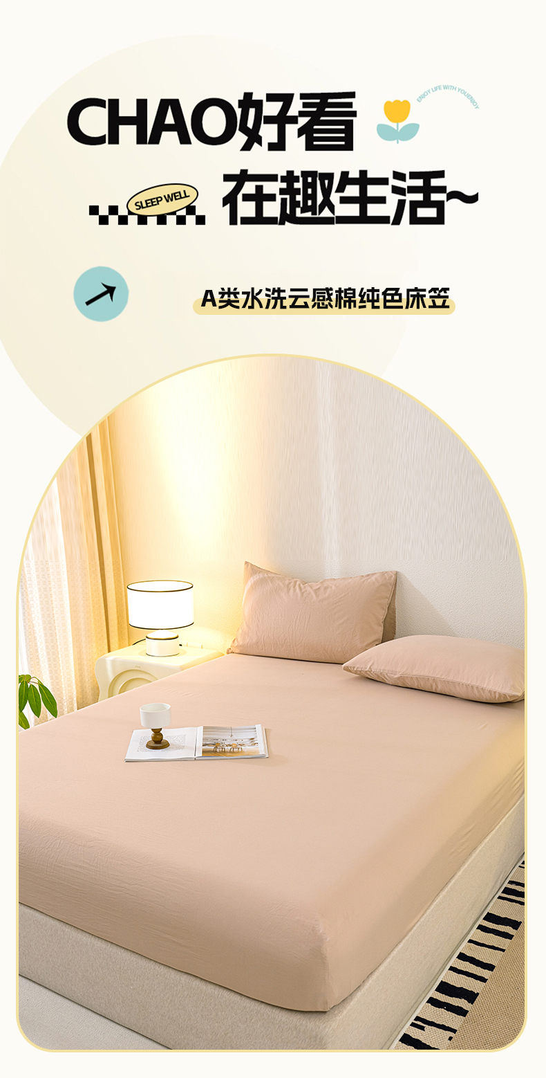 (总)桔禾家纺 2025新款水洗皱皱云感棉纯色床笠,奶茶驼,宾利蓝,富贵紫,高级灰,奶油白,苹果绿,晴空蓝,樱花粉,组合