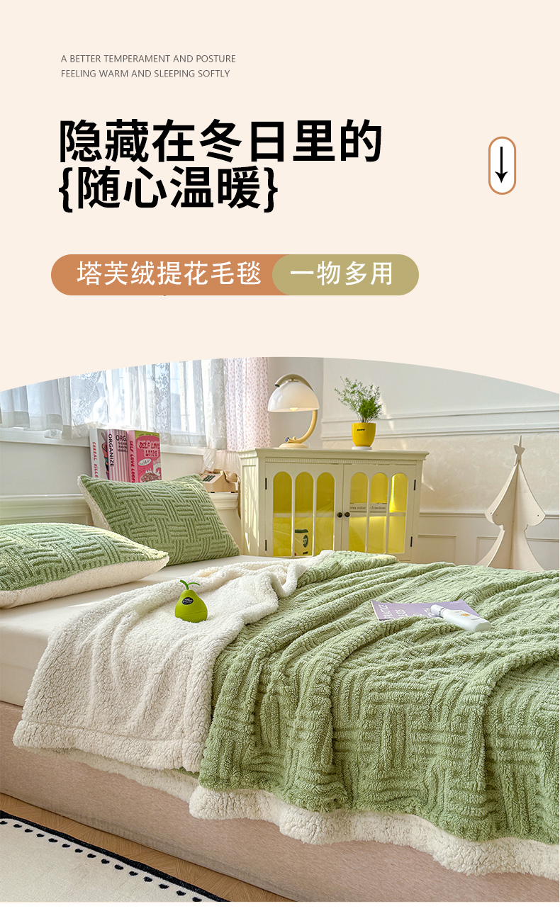 (总)默忆 2025新款塔芙绒提花毛毯,草木绿,冰川灰,蓝灰色,米白色,米黄色,深卡其,组合