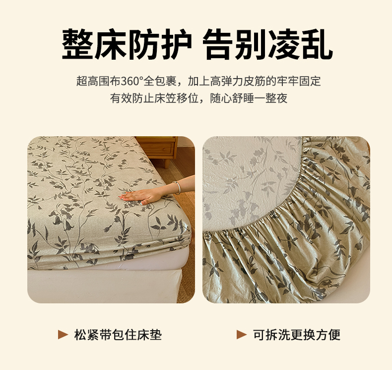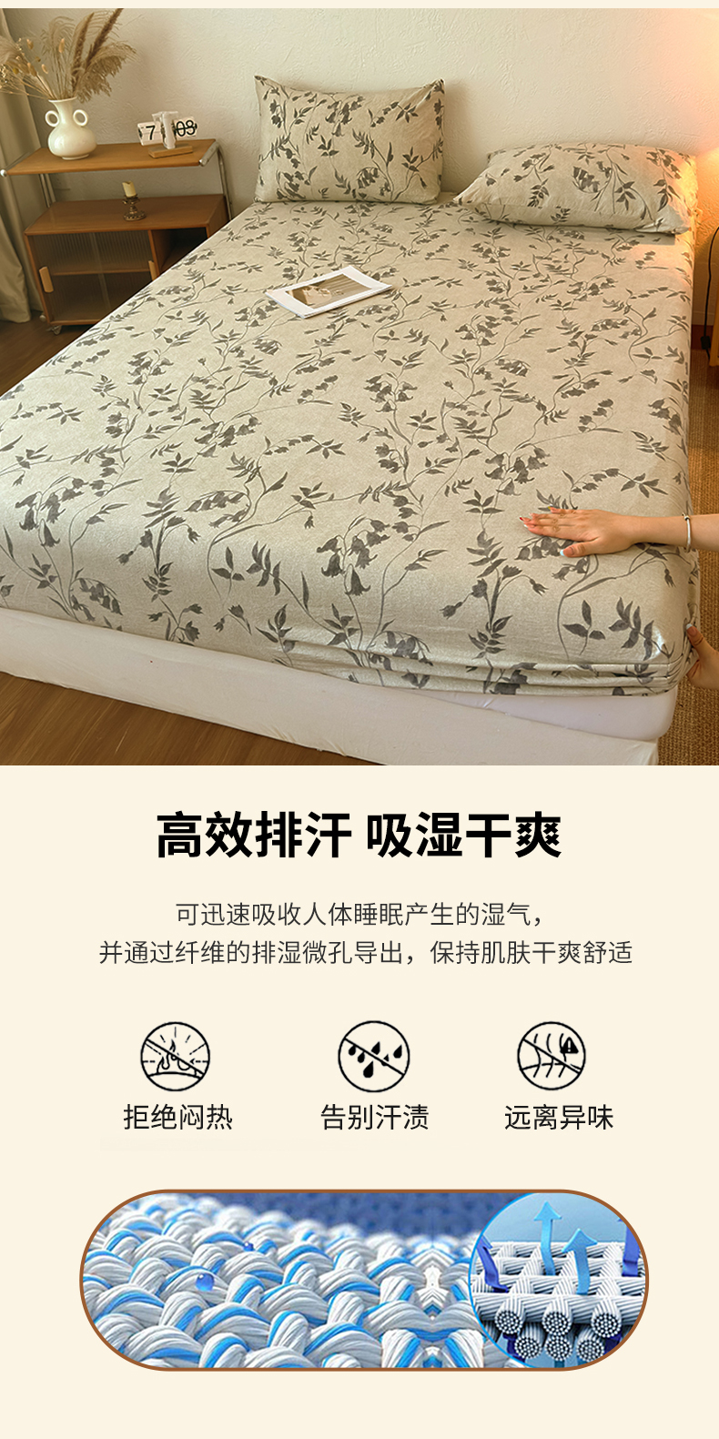 • 91家纺网 家纺一手货源 找家纺 麦乐迪 2025新款130克高克重仿棉印花单床笠 灰铃垂枝