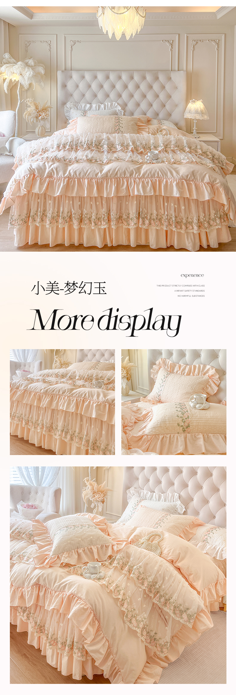 当前位置: 91家纺网 > 商品网购 > 床品套件 > 四件套 > 其它四件套 > 瑞宝 2025新款全棉花边床裙四件套系列-落日甜茶(控价308起) 落日甜茶-青柠绿