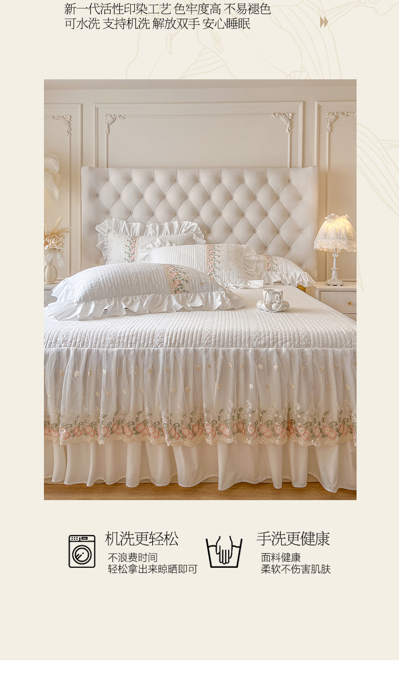 当前位置: 91家纺网 > 商品网购 > 床品套件 > 三件套 > 瑞宝 2025新款全棉花边床裙三件套系列-落日甜茶 落日甜茶-奶油白