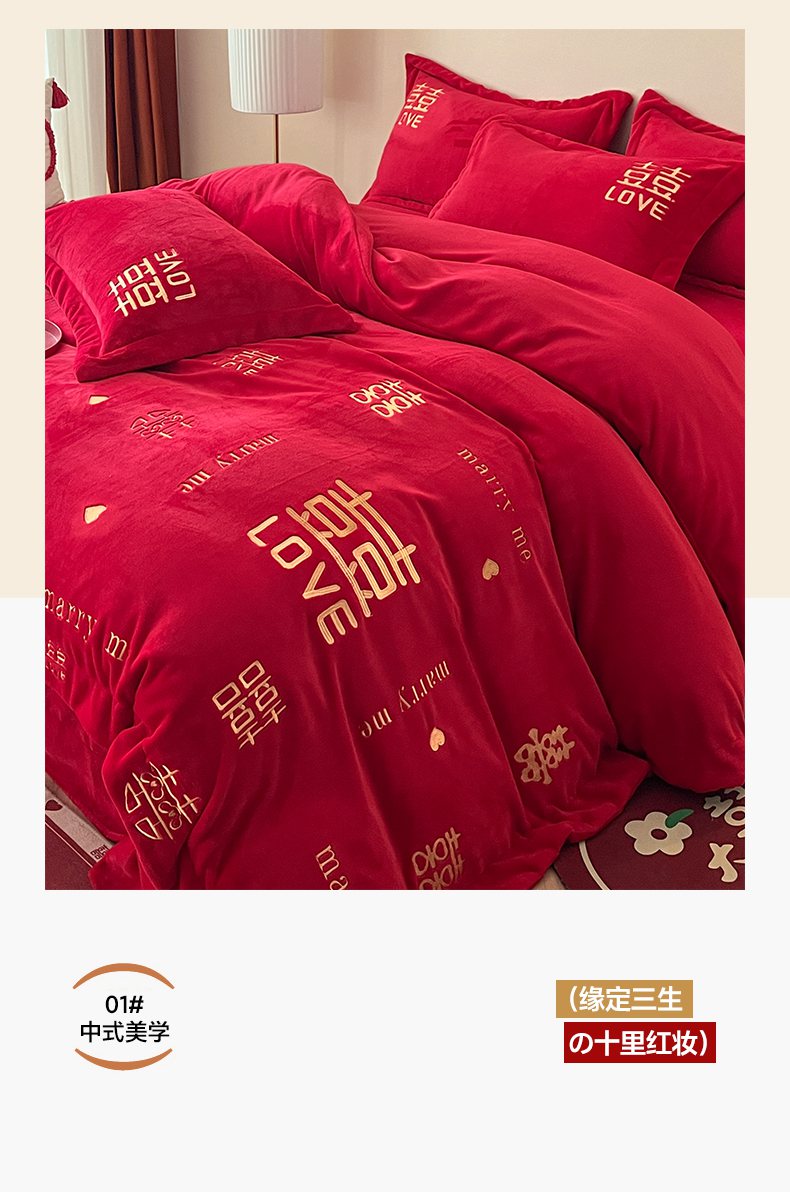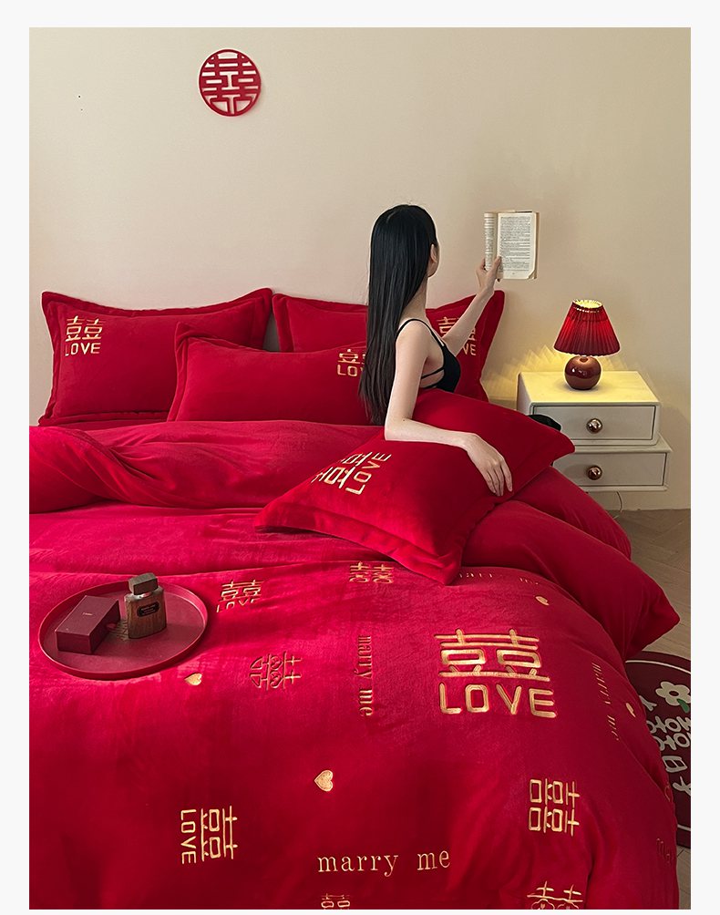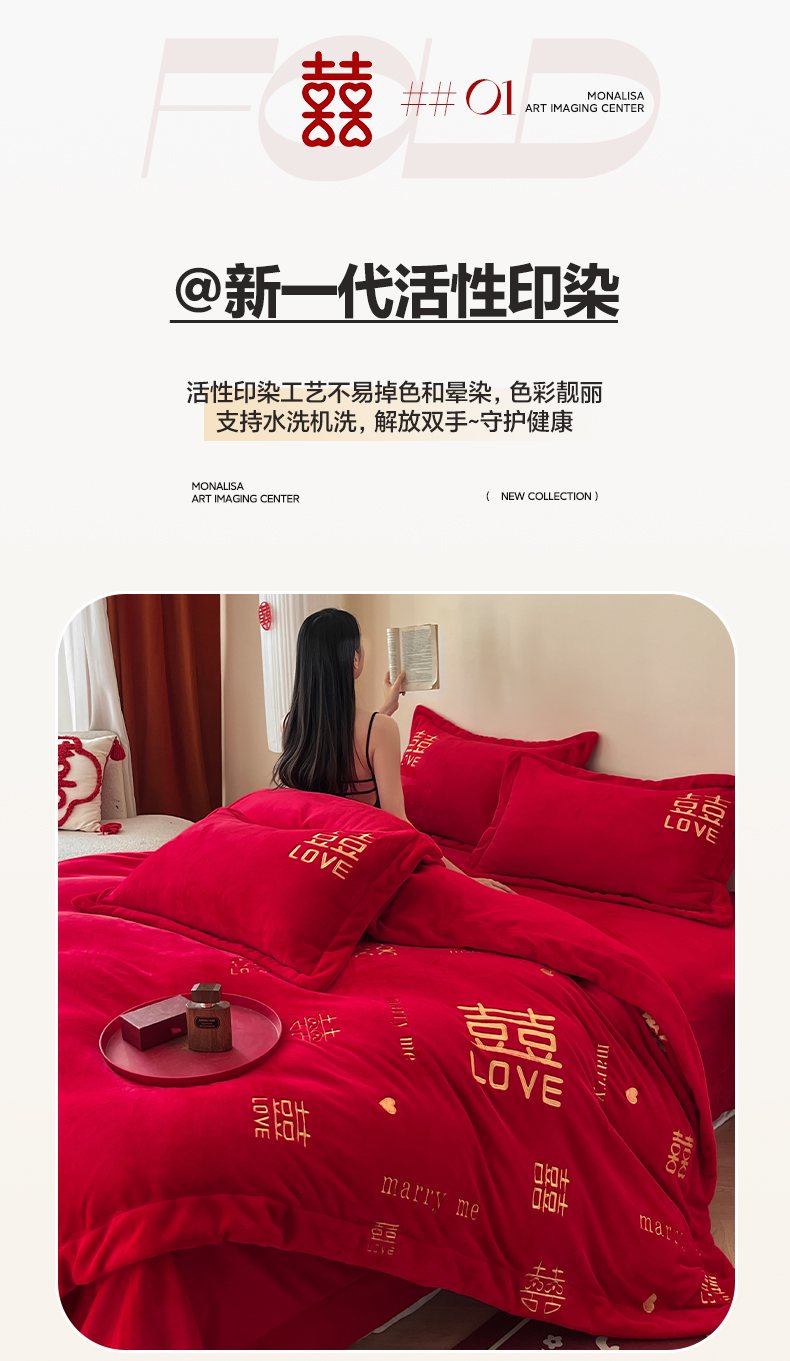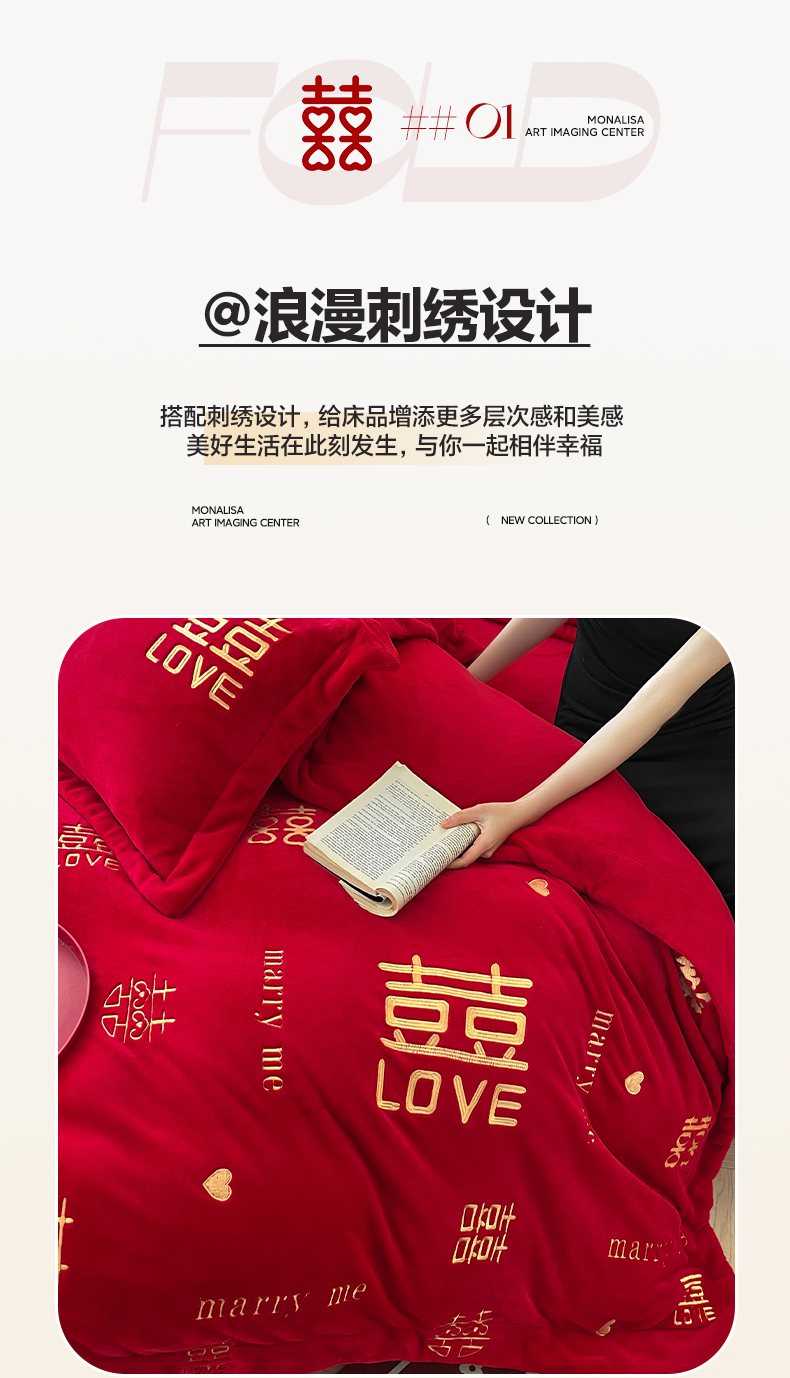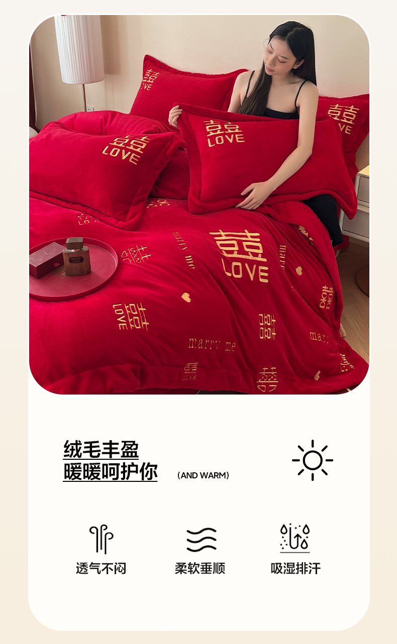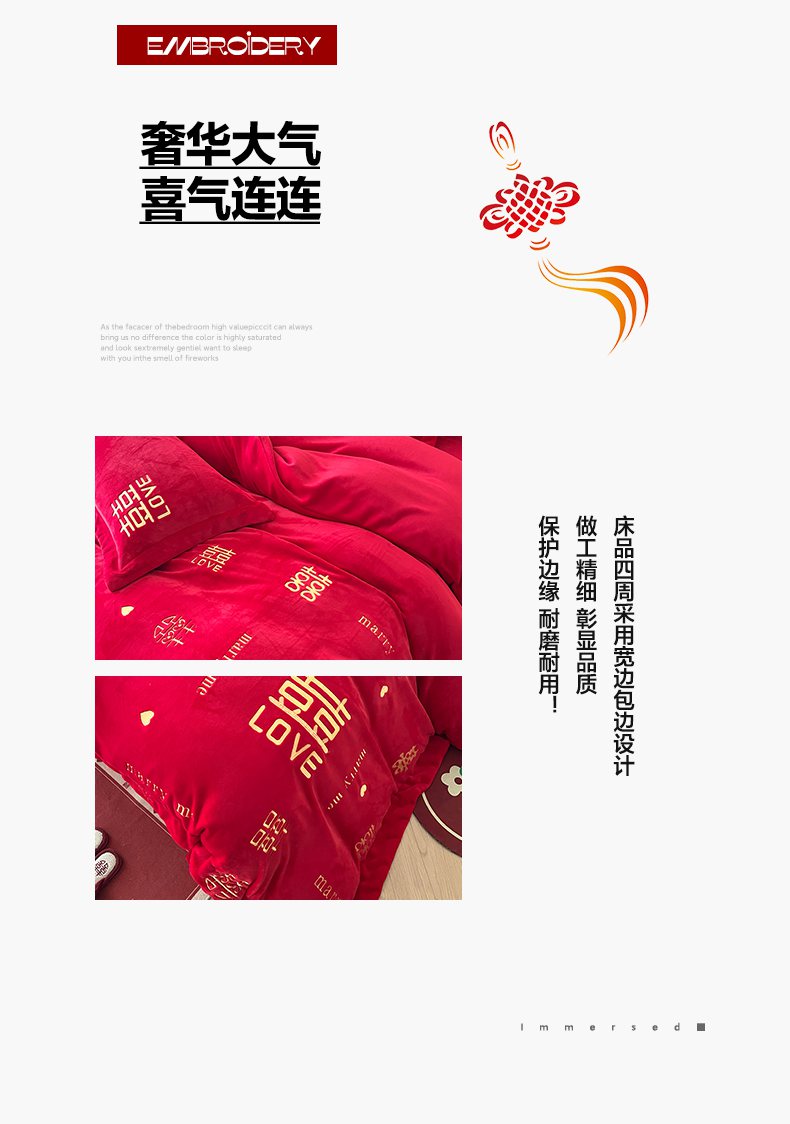 (总)欧乐蒂 2025新款高克重牛奶绒刺绣四件套-家家有喜,家家有喜-红,家家有喜-金