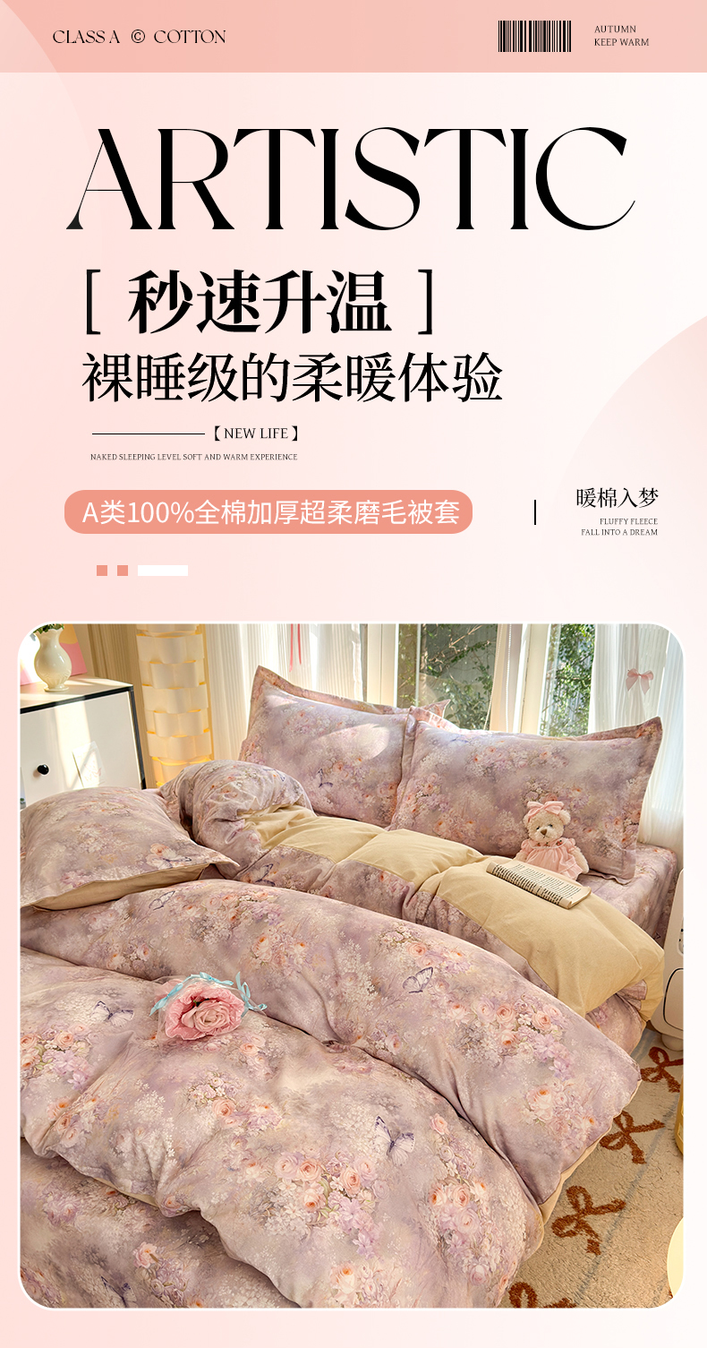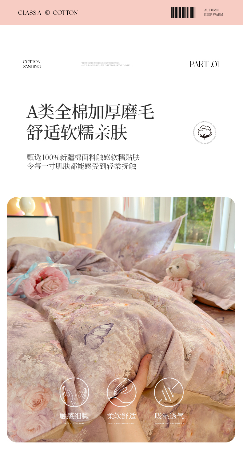 • 91家纺网 家纺一手货源 找家纺 拾物记 2025新款A类全棉纯棉加厚超柔磨毛单被套(提供买家秀质检报告和实验视频) 雾野花蝶