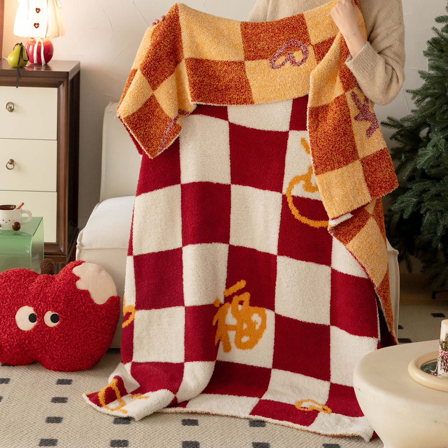 (总)多乐娜 2026新款马年新年款半边绒毛毯高克重沙发毯盖毯130*170cm大尺寸(会员-10元!附送拎包! 严格控价:单款+40元起销售,禁止低价!),马上纳福,奔腾岁月,红心效应