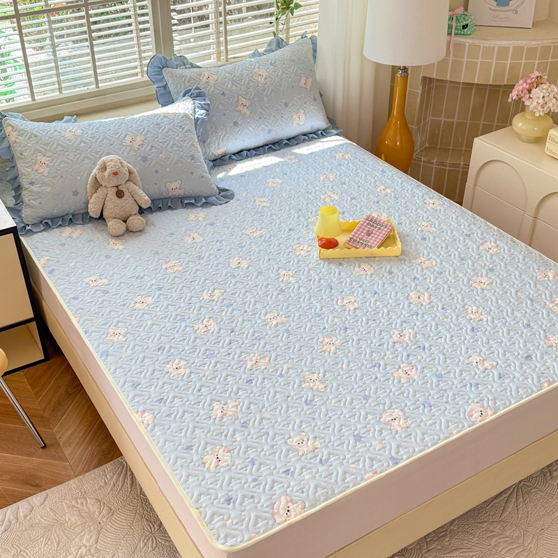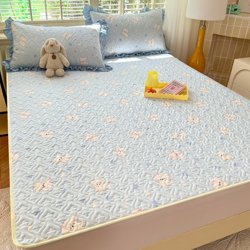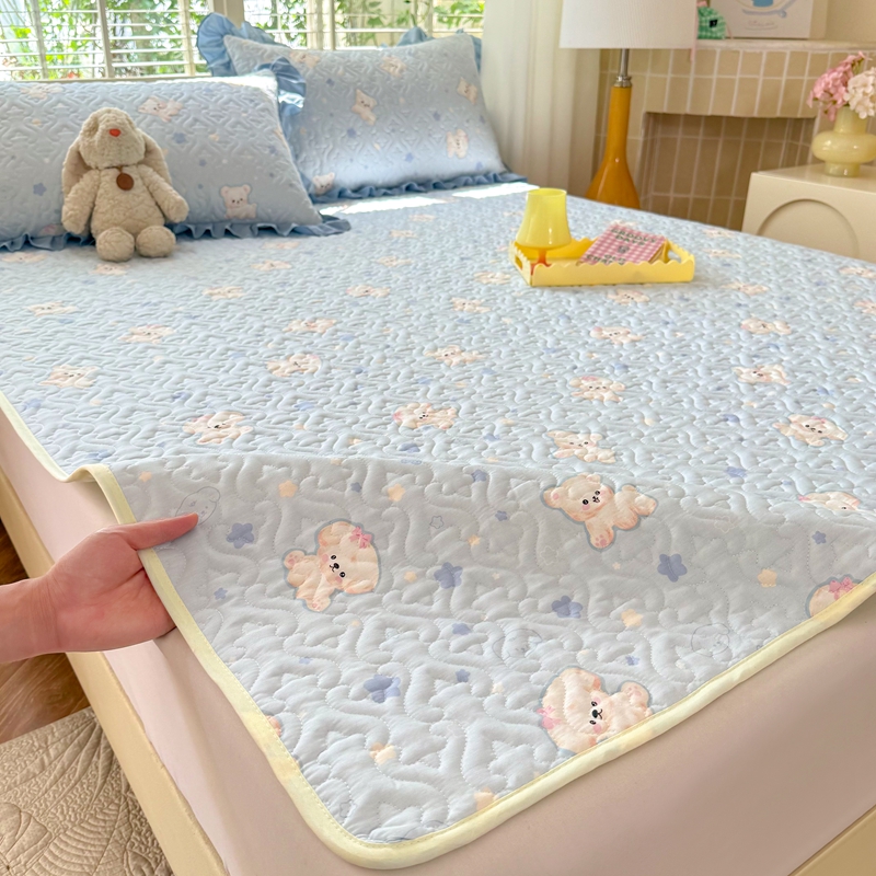 当前位置: 91家纺网 > 商品网购 > 床上用品 > 凉席 > 其他凉席 > 美达家纺 新款A类全棉夹棉防滑可机洗床盖全棉直边软席款(可定制)小甜心-兰