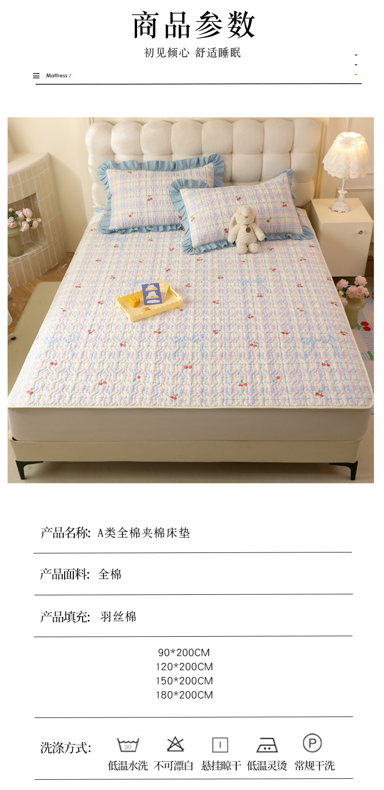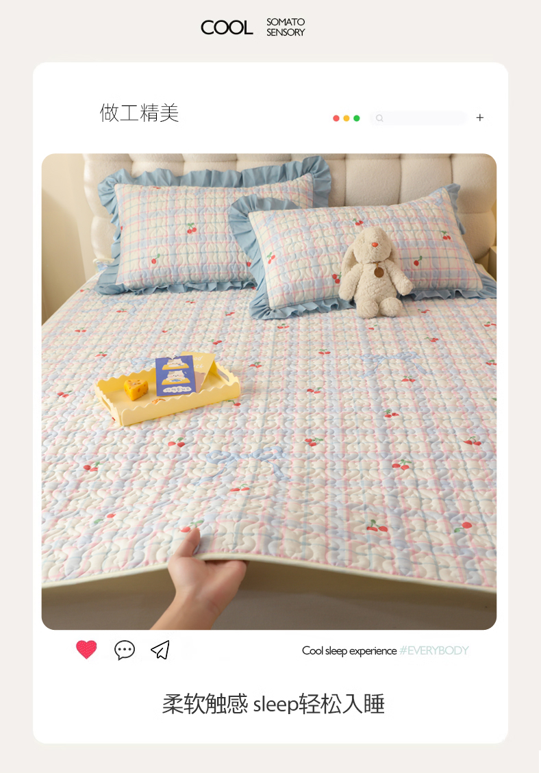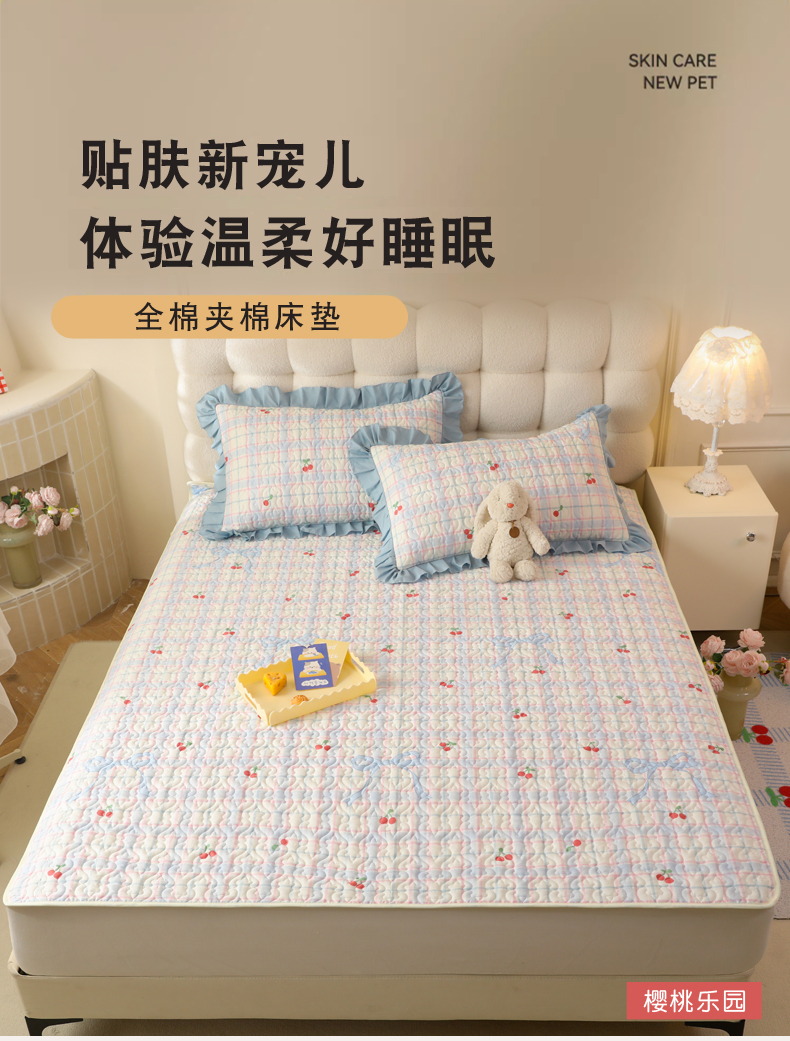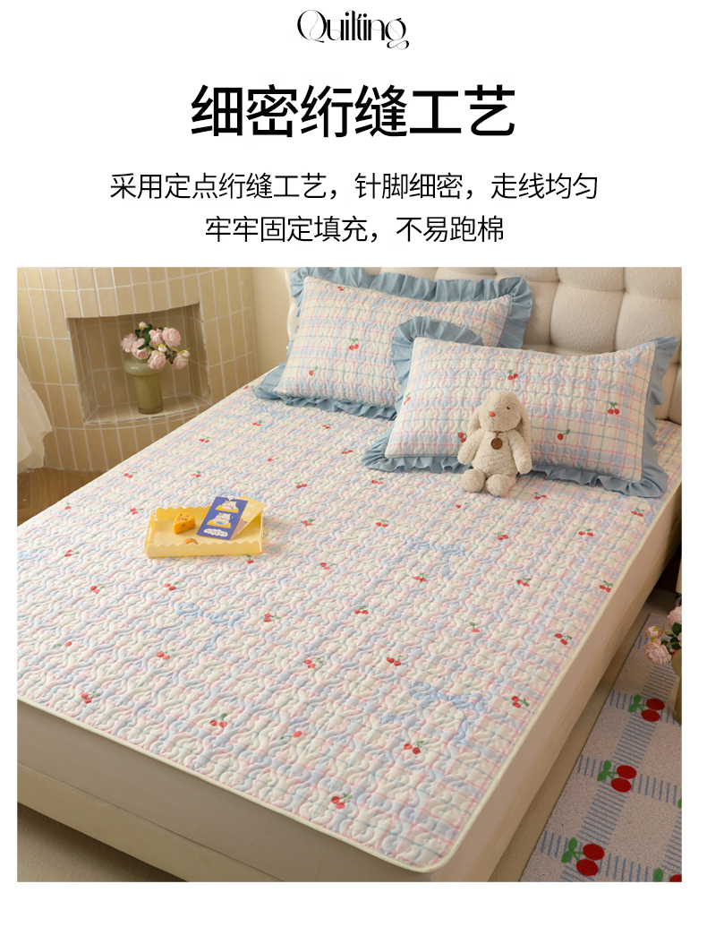 当前位置: 91家纺网 > 商品网购 > 床上用品 > 凉席 > 其他凉席 > 美达家纺 新款A类全棉夹棉防滑可机洗床盖全棉直边软席款(可定制)樱桃乐园