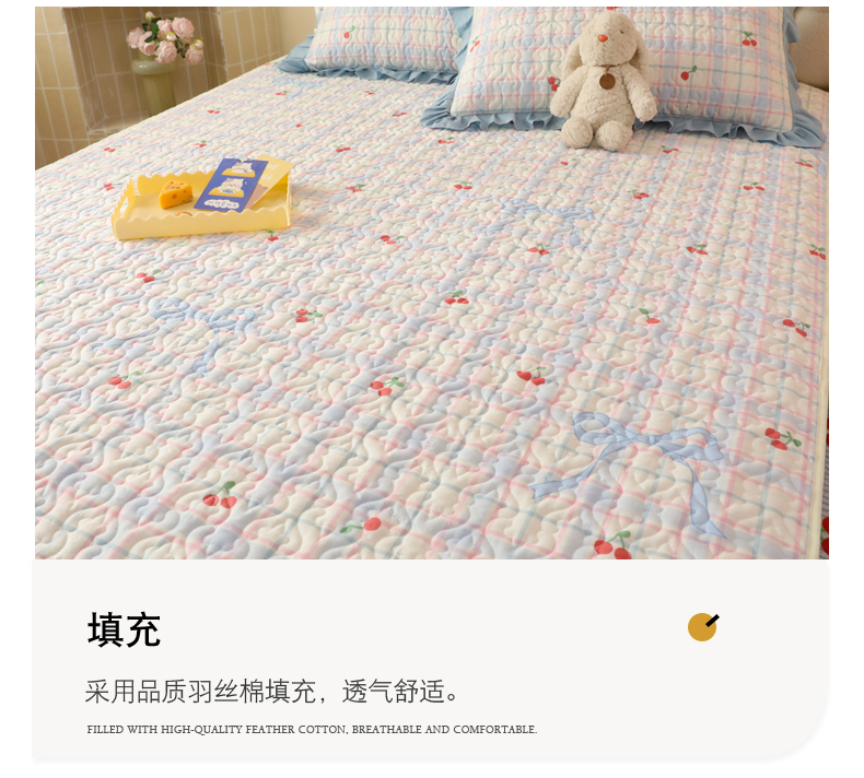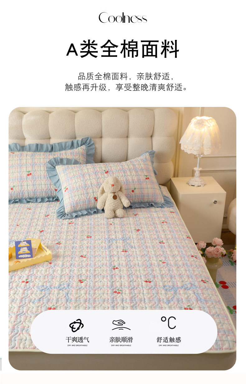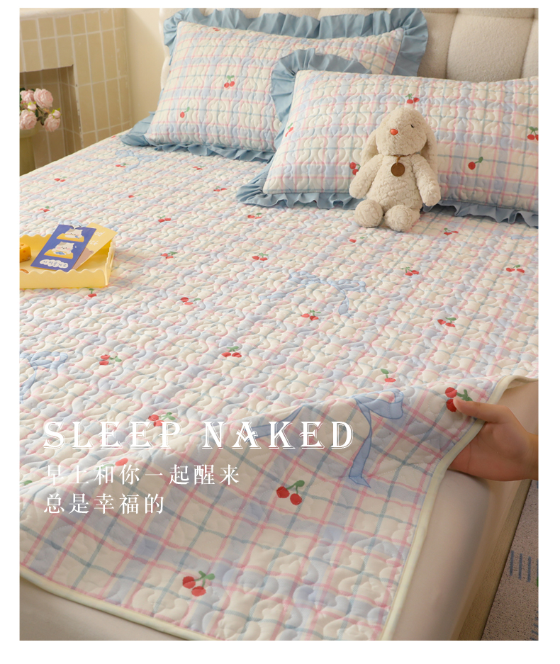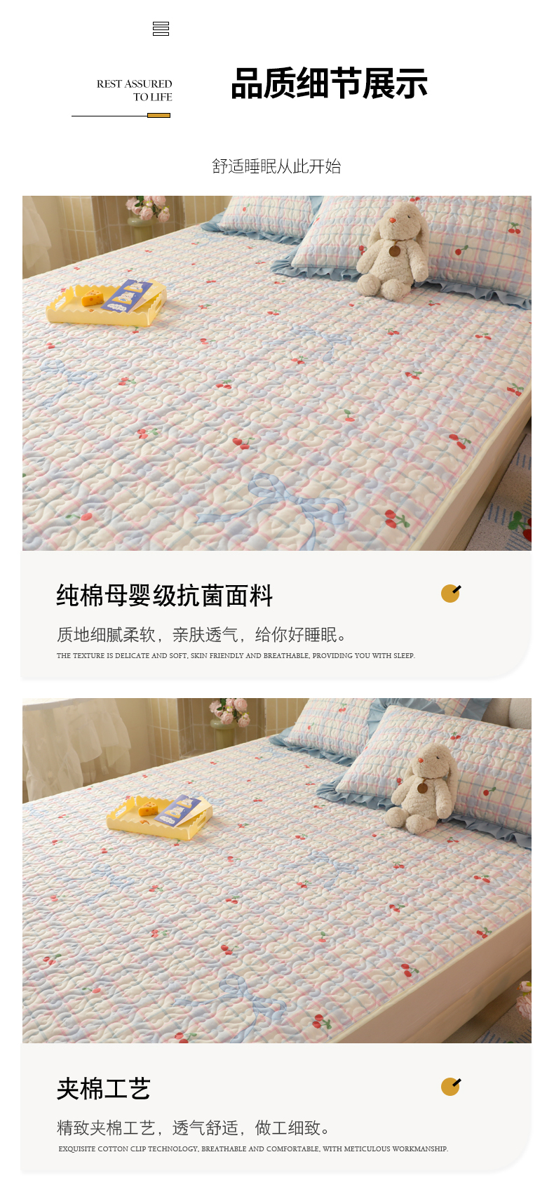 当前位置: 91家纺网 > 商品网购 > 床上用品 > 凉席 > 其他凉席 > 美达家纺 新款A类全棉夹棉防滑可机洗床盖全棉直边软席款(可定制)樱桃乐园