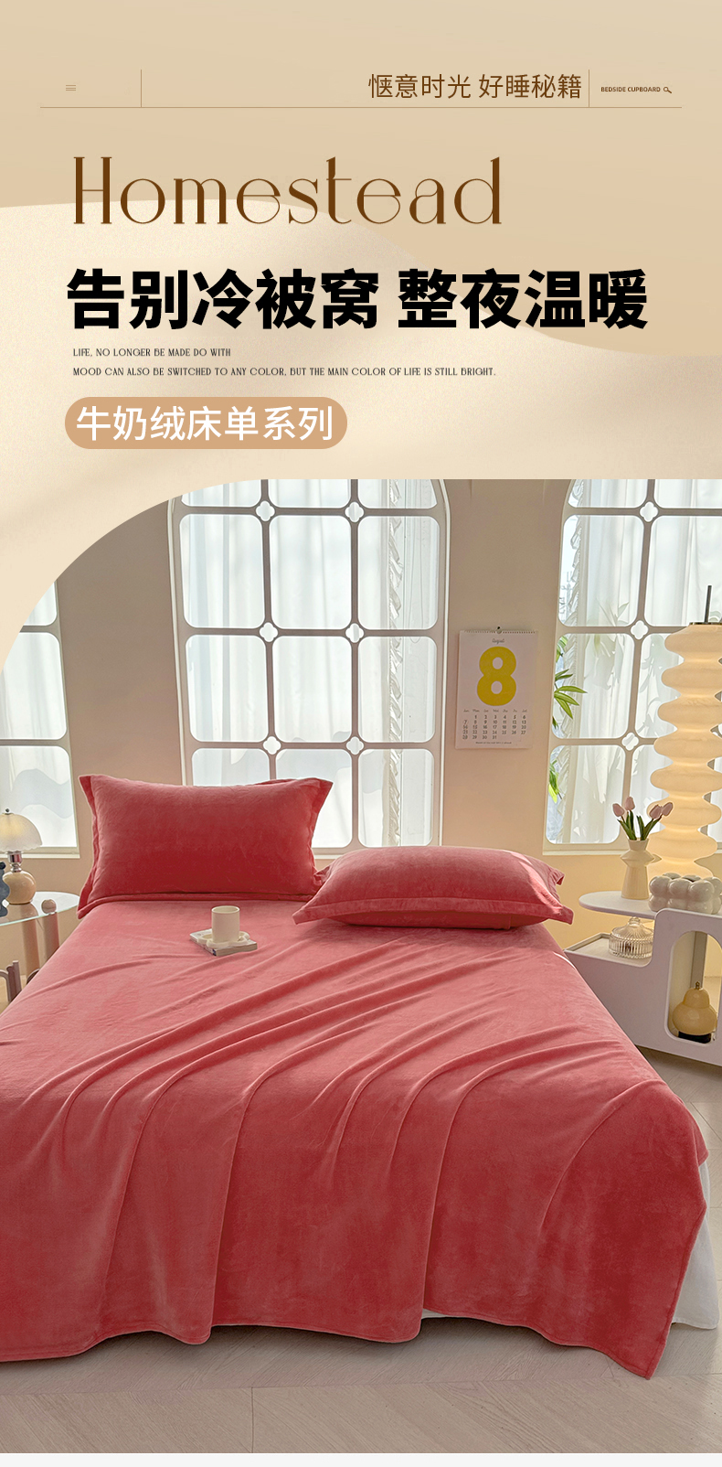 (总)悠米悠家 2025新款保暖舒适牛奶绒单品床单,绿色,黑色,蓝色,灰色,浅蓝,粉紫色,粉色,卡其色,西瓜粉