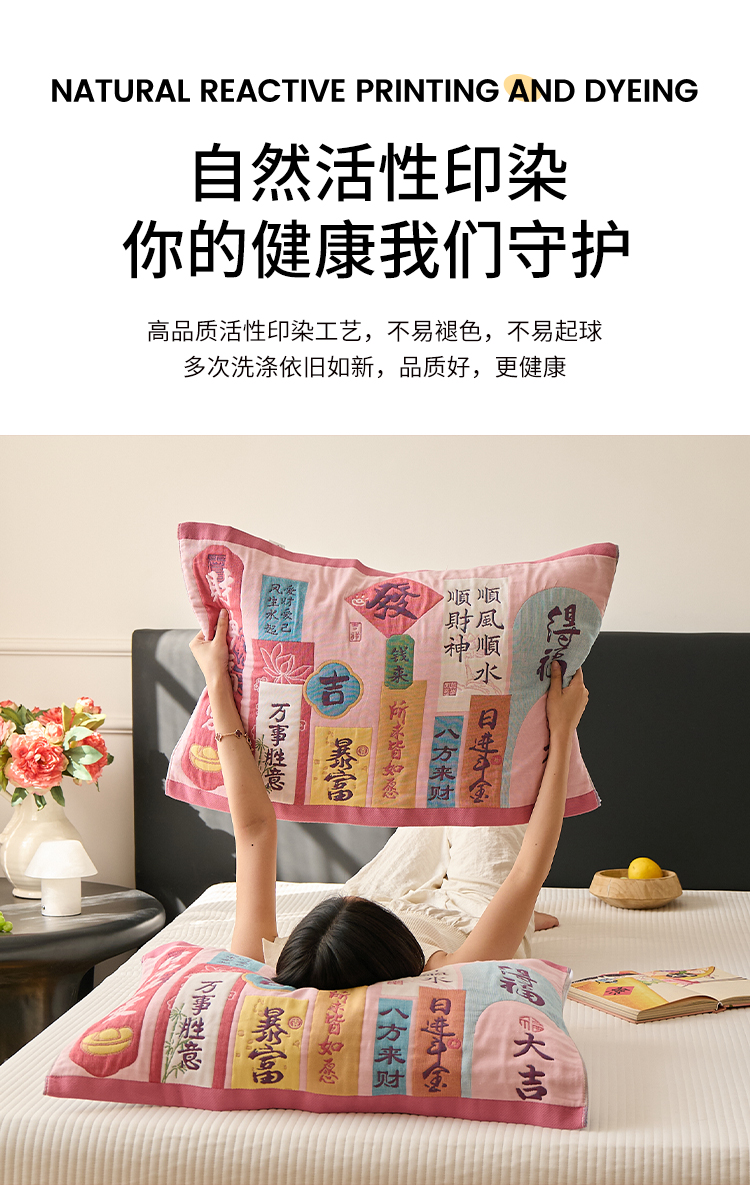 沐瑟家纺 2025新款纯棉纱布枕巾八层枕巾-發 哈哈哈