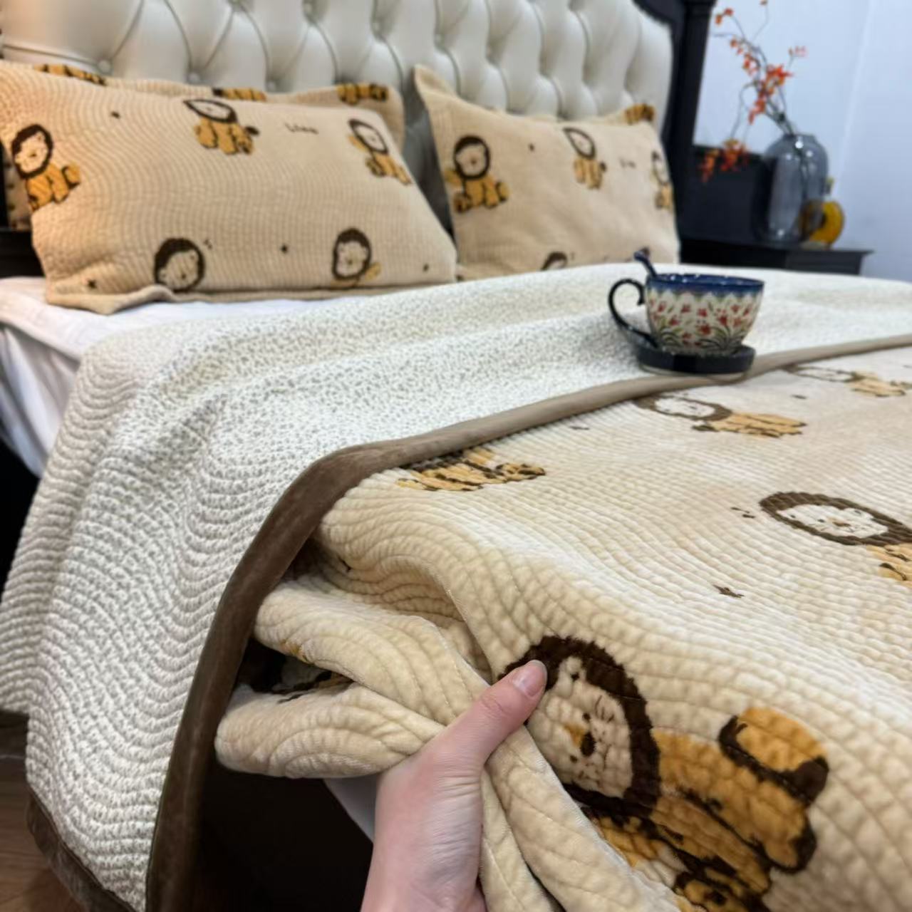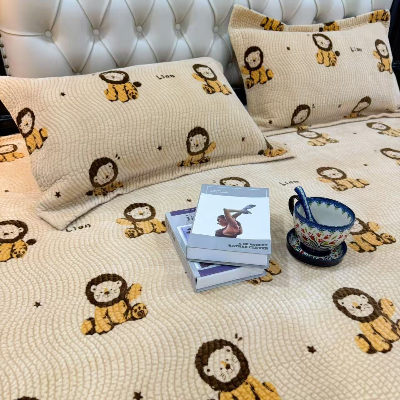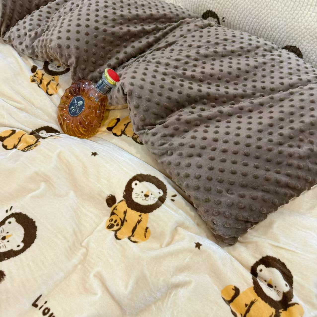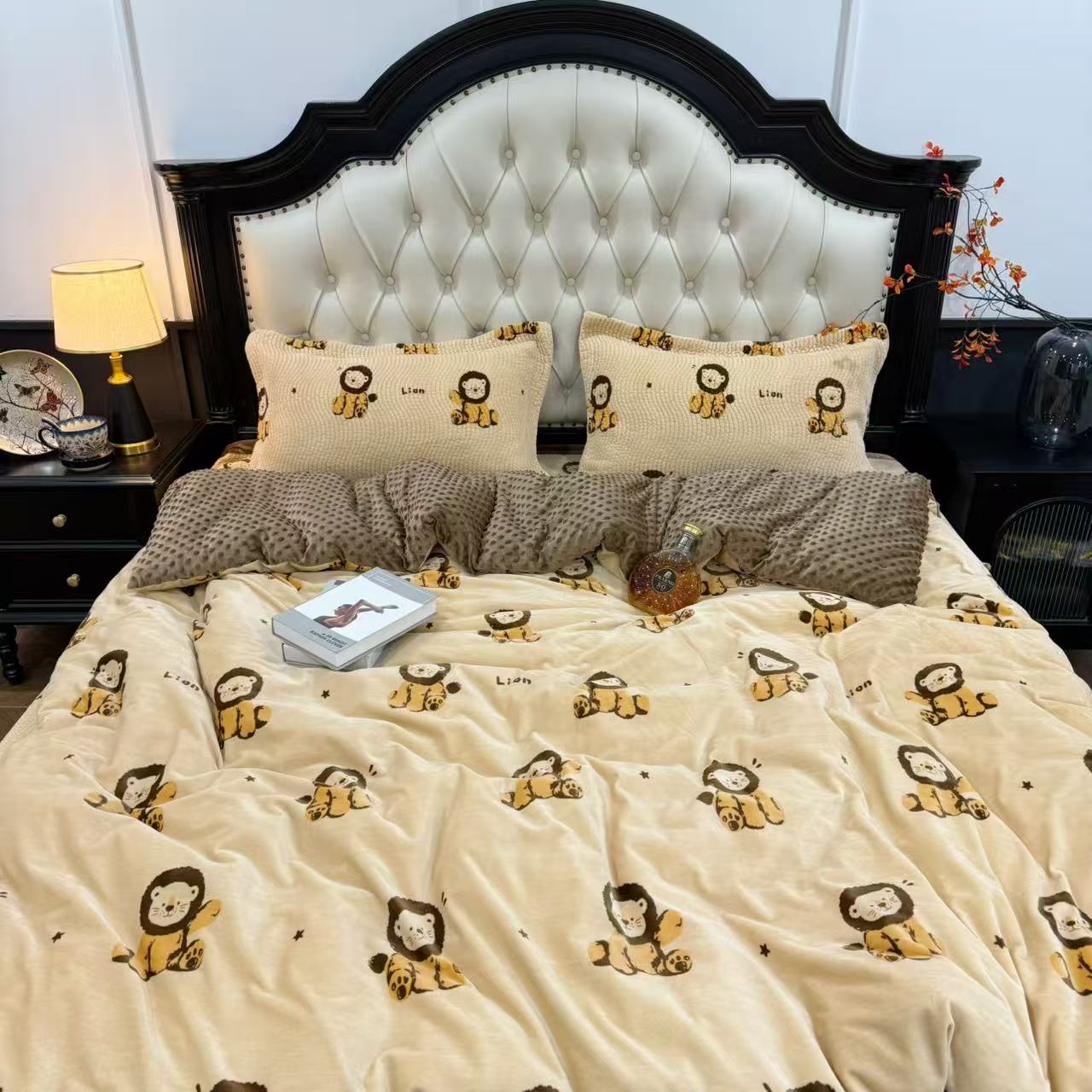 床盖工厂店 2025新款宝宝绒床盖四件套 小狮子