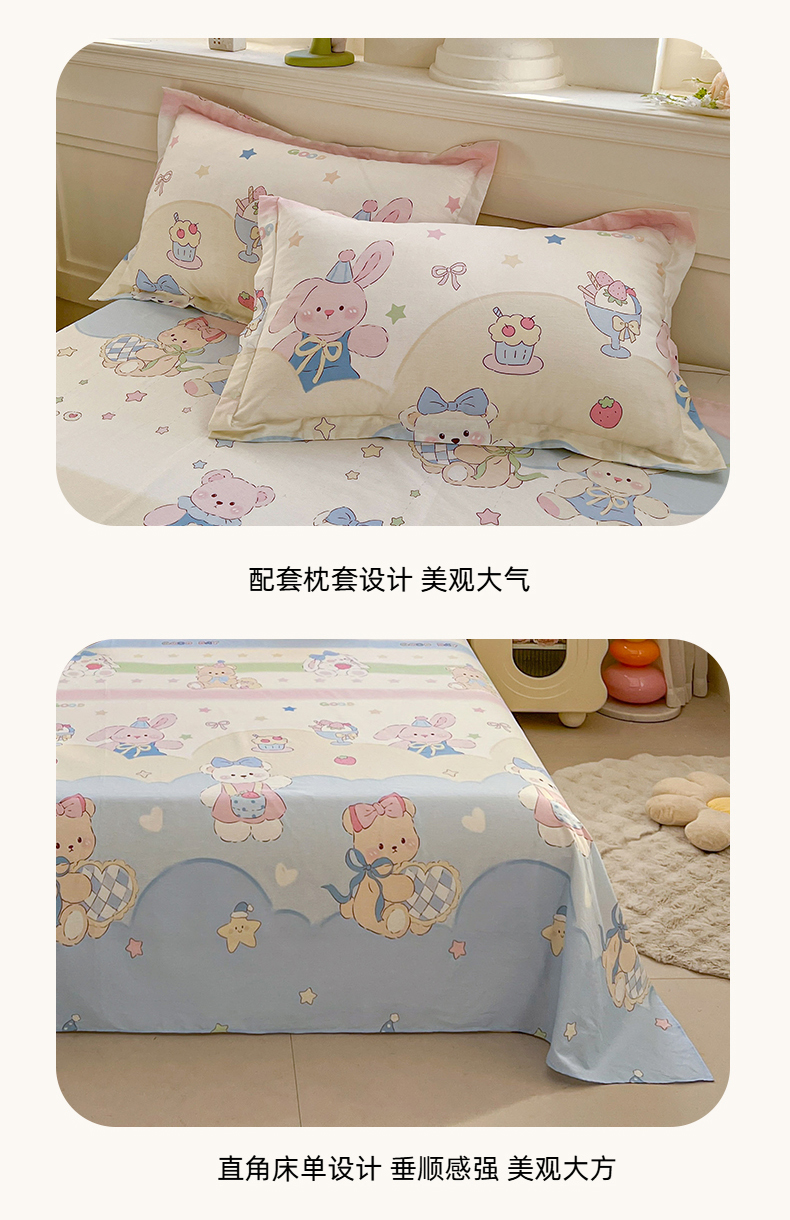 (总)名优家纺 2026新款12868全棉小清新印花四件套单品系列-单床单,安妮日常,冰激凌派对,动物花园,几何飞船,困困腊肠狗,帽子比熊,西西莉亚,夏瑾,徐徐花开,谣谣玉穗