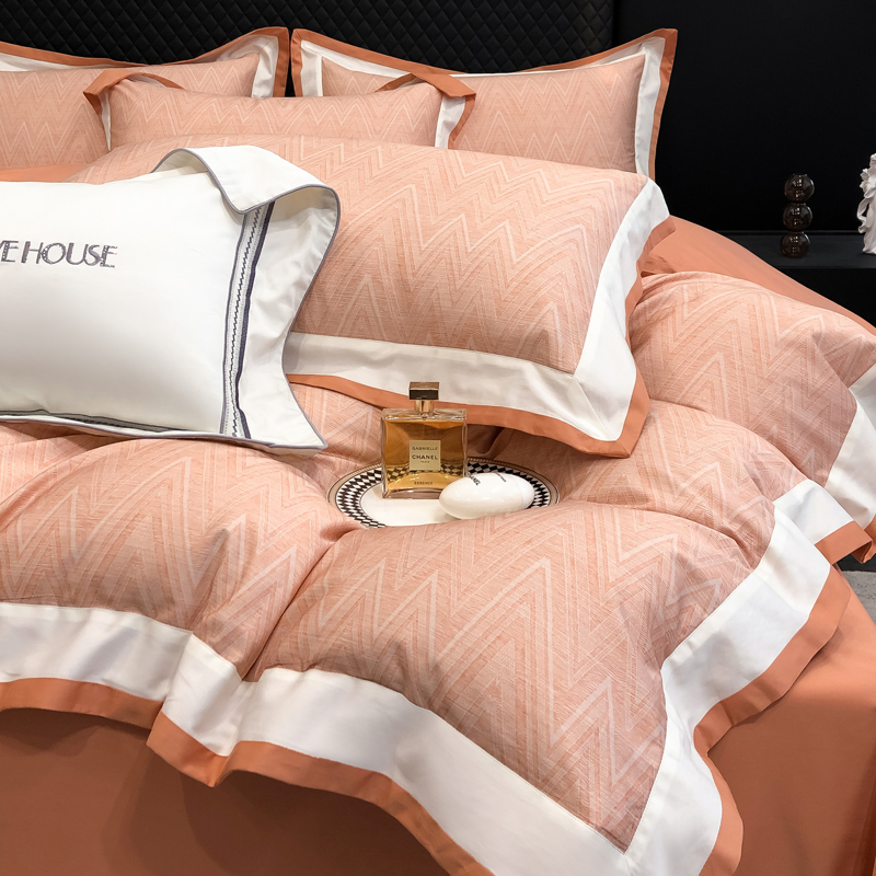 (总)若未家居 LOVEWE HOUSE 2026新款100S数码印花轻奢风四件套-波澜,波澜 爵士灰,波澜 公主粉,波澜 贝拉橘